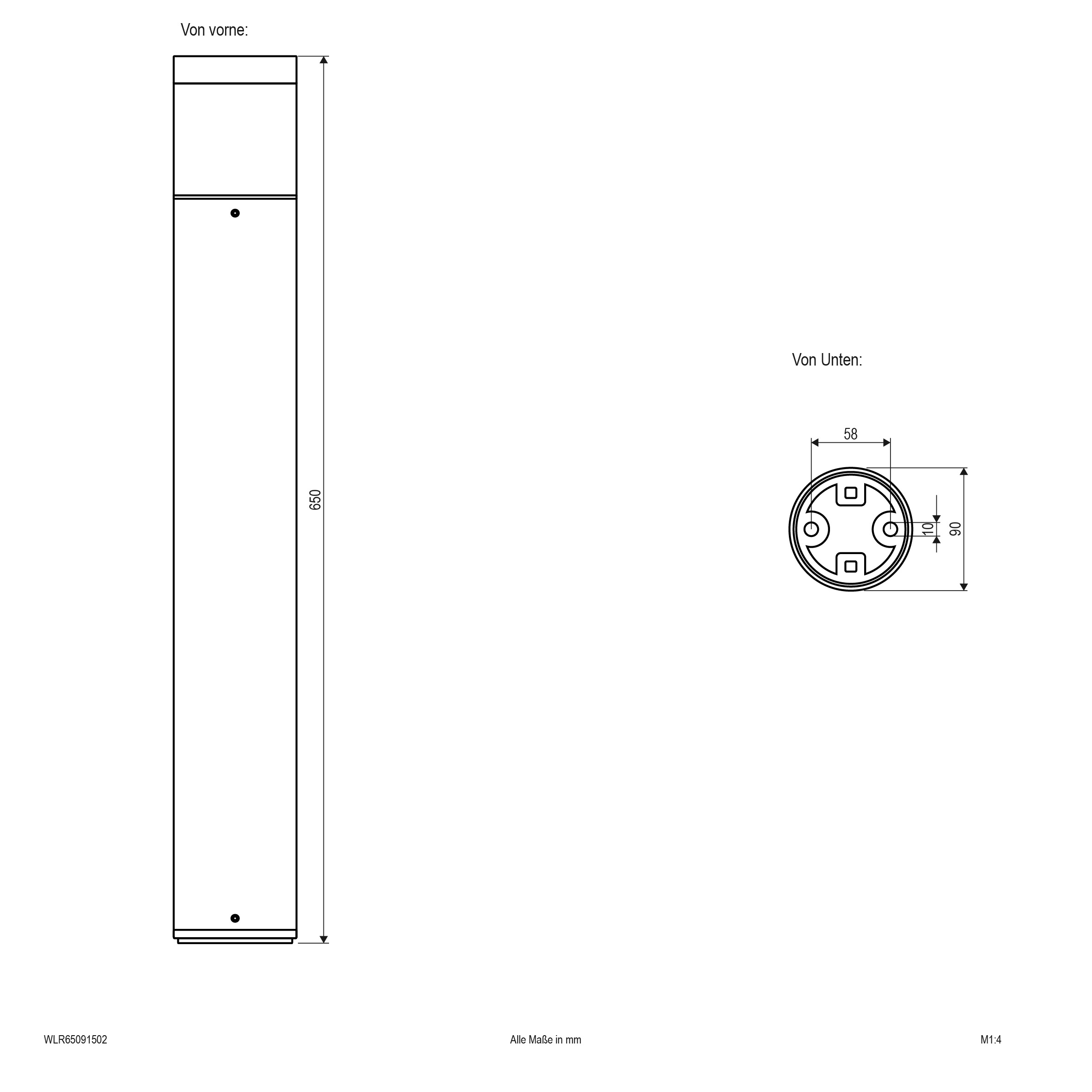 | Abmessung (LxBxH) | 90 x 90 x 650 mm |