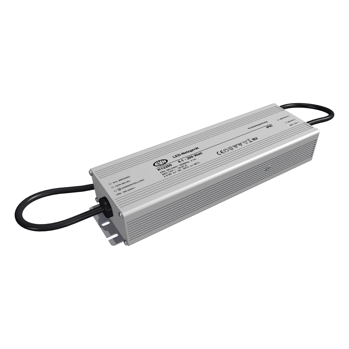 Der kurzschlussfeste Sicherheitstransformator lässt sich auf Grund der höheren Schutzart problemlos im Außenbereich einsetzen, kann aber z. B. auch beim Möbelbau verwendet werden, da die MM-Kennzeichnung gegeben ist. Die Anschlussleitungen haben eine Länge von 29cm primärseitig und 29cm sekundärseitig. Technische Daten: Versorgungsspannung: 100-240V/AC und 180-250V/DC, ta: -20°C - 50°C, tc: 80°C, Powerfaktor: 0,95.