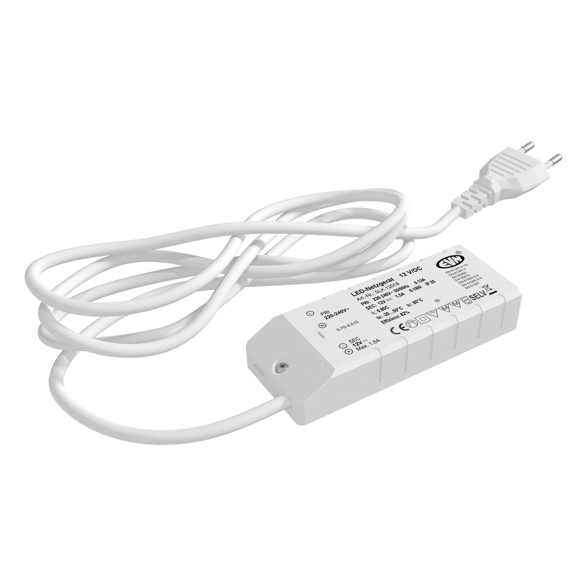 Der kurzschlussfeste Sicherheitstransformator kann problemlos beim Möbelbau zum Einsatz gebracht werden, da die MM-Kennzeichnung gegeben ist. Der Anschluss primärseitig und sekundärseitig erfolgt durch Schraubklemmen, welche für Kabel von 0,75mm² - 2,5mm² geeignet sind, wobei das Netzgerät primärseitig bereits mit einer 1,5m langen Eurozuleitung ausgestattet ist. Technische Daten: Versorgungsspannung: 220-240V/AC und 180-250V/DC, ta: -20°C - 50°C, tc: 85°C, Powerfaktor: 0,80.