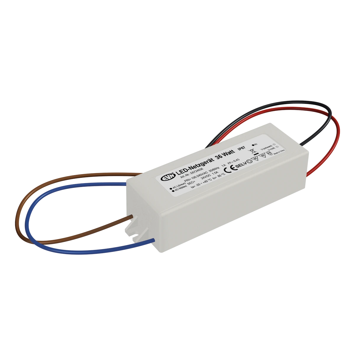 Der kurzschlussfeste Sicherheitstransformator lässt sich auf Grund der höheren Schutzart problemlos im Außenbereich einsetzen, kann aber z. B. auch beim Möbelbau verwendet werden, da die MM-Kennzeichnung gegeben ist. Die Anschlussleitungen haben eine Länge von 14cm primärseitig und 14cm sekundärseitig. Technische Daten: Versorgungsspannung: 100-240V/AC, ta: -20°C - 40°C, tc: 85°C, Powerfaktor 0,45.