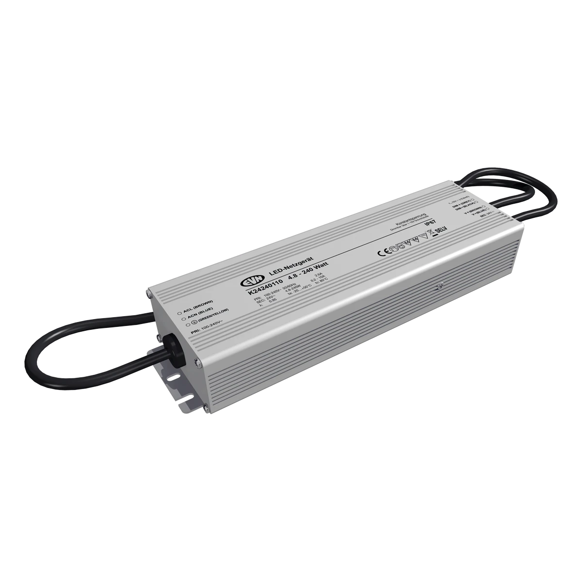 Der kurzschlussfeste Sicherheitstransformator lässt sich auf Grund der höheren Schutzart problemlos im Außenbereich einsetzen, kann aber z. B. auch beim Möbelbau verwendet werden, da die MM-Kennzeichnung gegeben ist. Die Anschlussleitungen haben eine Länge von 29cm primärseitig und 29cm sekundärseitig, ebenso hat auch die Anschlussleitung für die 1-10V-Schnittstelle eine Länge von 29cm. Technische Daten: Versorgungsspannung: 100-240V/AC und 180-250V/DC, ta: -20°C - 50°C, tc: 80°C, Powerfaktor 0,95.