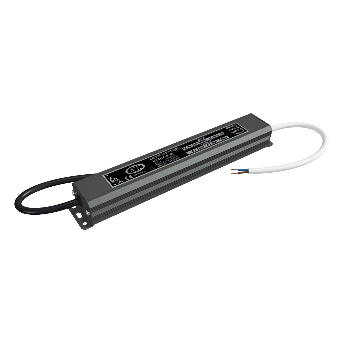 Das LED-Netzgerät lässt sich auf Grund der höheren Schutzart problemlos im Außenbereich einsetzen, kann aber z. B. auch beim Möbelbau verwendet werden, da die MM-Kennzeichnung gegeben ist. Die Anschlussleitungen haben eine Länge von 15cm primärseitig und 15cm sekundärseitig. Technische Daten: Versorgungsspannung: 170-250V/AC, ta: -5°C - 40°C, tc: 65°C, Powerfaktor 0,90.