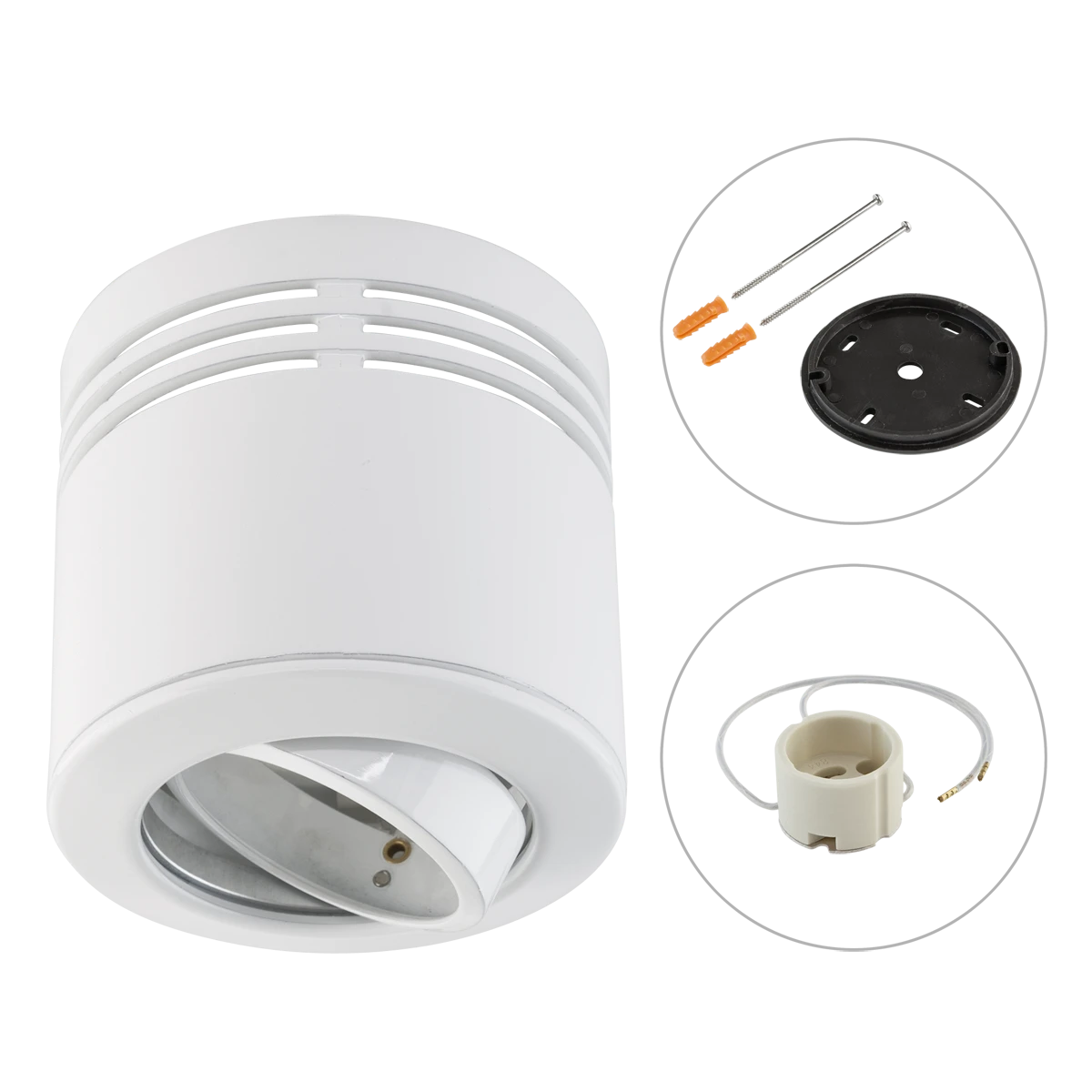 Schwenkbare Deckenanbauleuchte für vielfältige Anwendungen im Innenbereich. Sowohl Effektbeleuchtungen, Raumbeleuchtung, Akzentuierte Beleuchtung und vieles mehr, lassen sich mit dieser Leuchte umsetzten. Durch die Hochvoltfassung lassen sich verschiedene Leuchtmittel für die Unterschiedlichsten Beleuchtungsanforderungen in die Leuchte einsetzen, ganz egal ob Halogen oder LED, wodurch der Gestaltungsmöglichkeit nahezu keine Grenzen gesetzt sind. Da die Leuchte direkt an die 230V-Zuleitung angeschlossen werden kann, entfallen zusätzliche Kosten für Betriebsgeräte. Technische Daten: Schwenkwinkel: 30°, Drehbereich: 355°, Material: Messing.