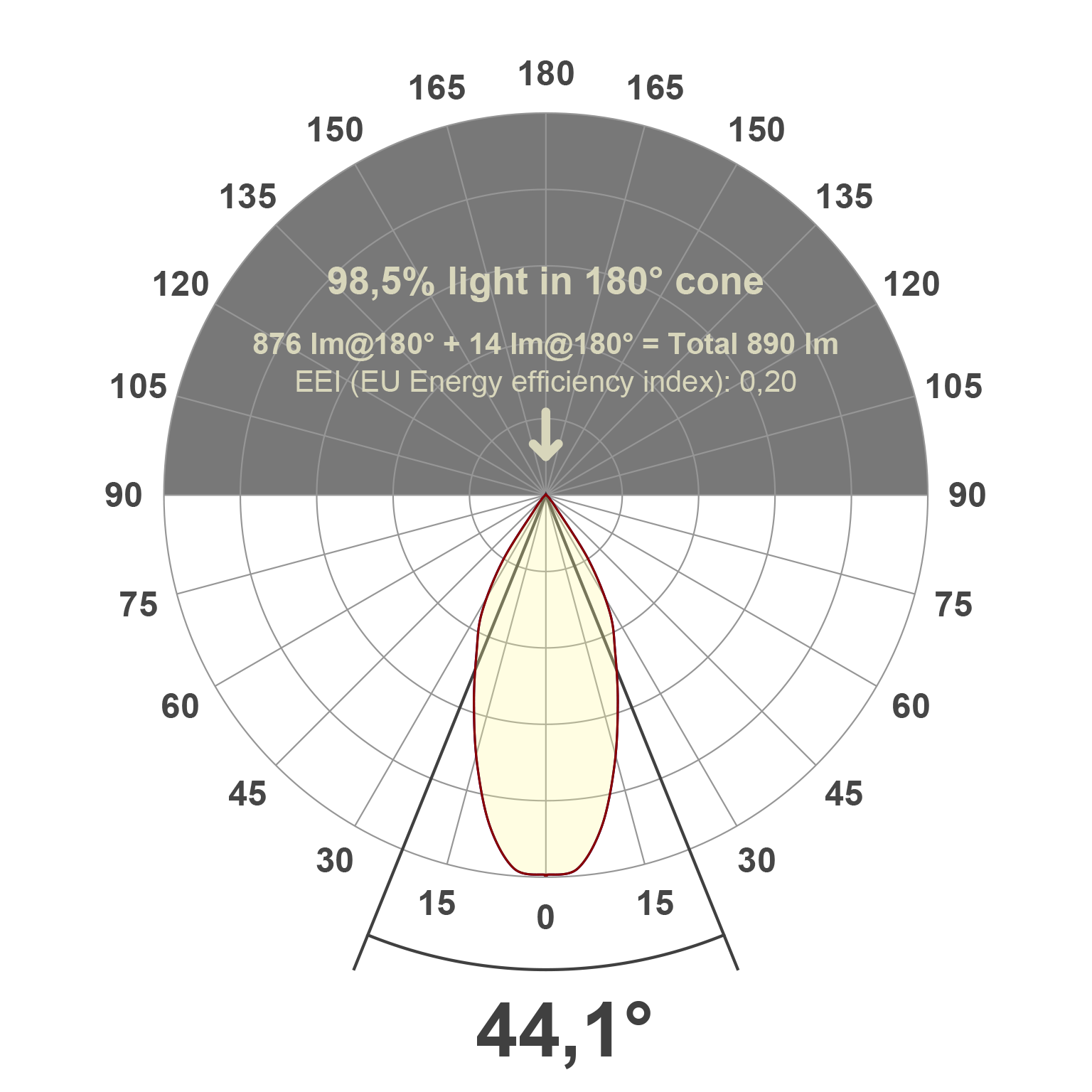| Ausstrahlungswinkel | 44 ° |