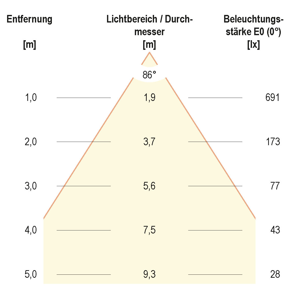 | Ausstrahlungswinkel (Bereich) | extrem breitstrahlend >80° |