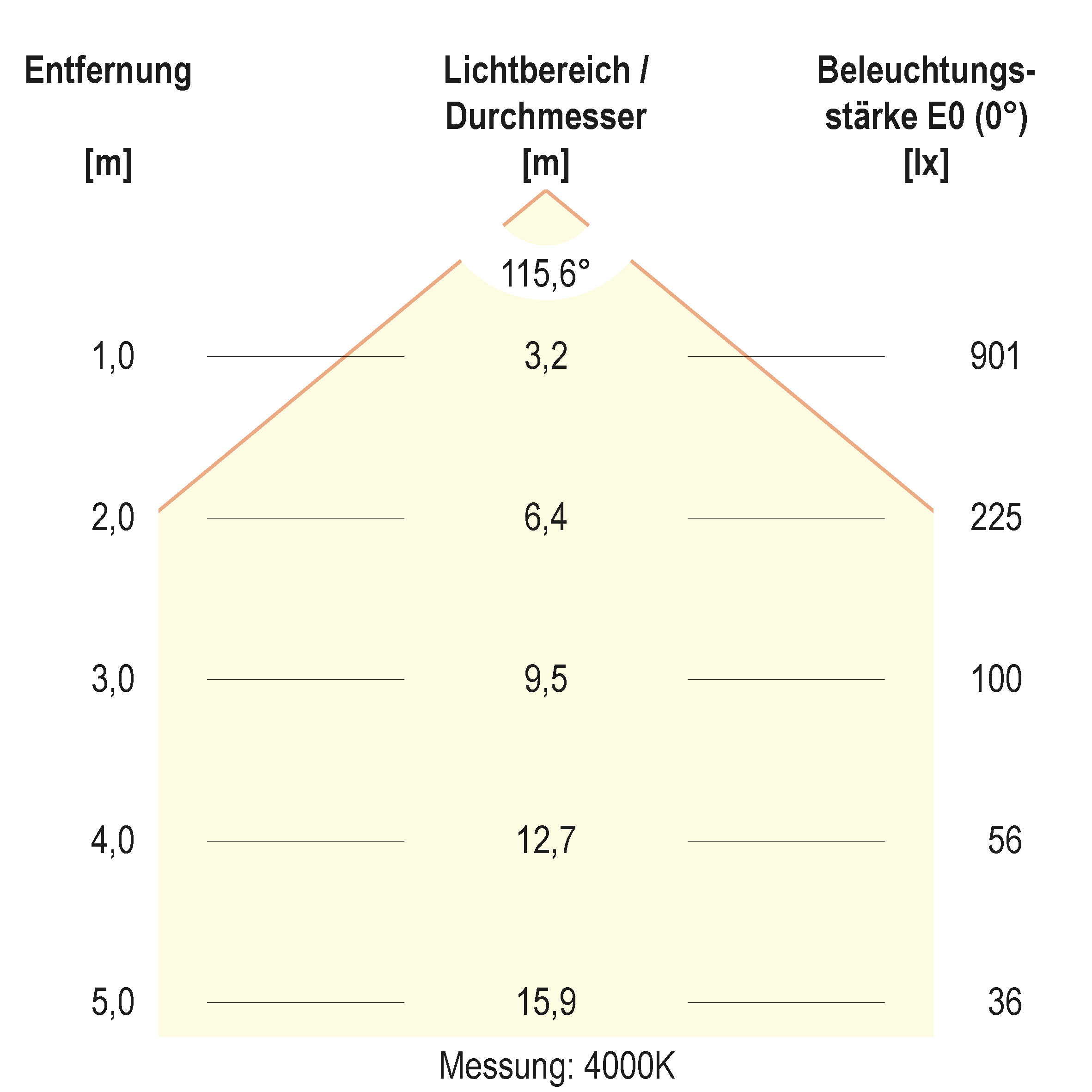 | Ausstrahlungswinkel (Bereich) | extrem breitstrahlend >80° |