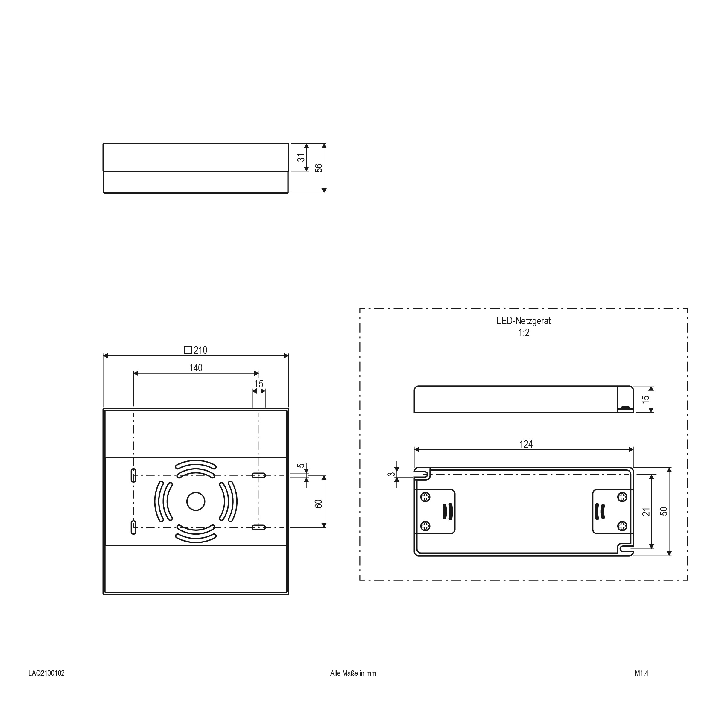 | Abmessung (LxBxH) | 210 x 210 x 56 mm |