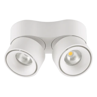 Deckenanbauleuchte für vielfältige Anwendungen im Innenbereich. Sowohl Effektbeleuchtungen, Raumbeleuchtung, Akzentuierte Beleuchtung und vieles mehr, lassen sich mit dieser Leuchte umsetzten. Zusätzliche Kosten für Leuchtmittel entfallen bei dieser Leuchte, da die Leistung von einem fest verbauten LED-Chip geliefert wird. Da das Betriebsgerät in der Leuchte verbaut ist, fallen auch hierfür keine zusätzlichen Kosten an. Mittels Dip-Schalter kann eine von zwei möglichen Farbtemperaturen eingestellt werden. Die möglichen Farbtemperaturen und daraus resultierenden Lumen sind: 3000K (2x784lm) und 4000K (2x795lm). Beide Leuchtenköpfe lassen sich um 350° drehen und auf eine Seite schwenken, mit einem Schwenkwinkel von 90°. Die Farbe entspricht ähnlich RAL9016.
