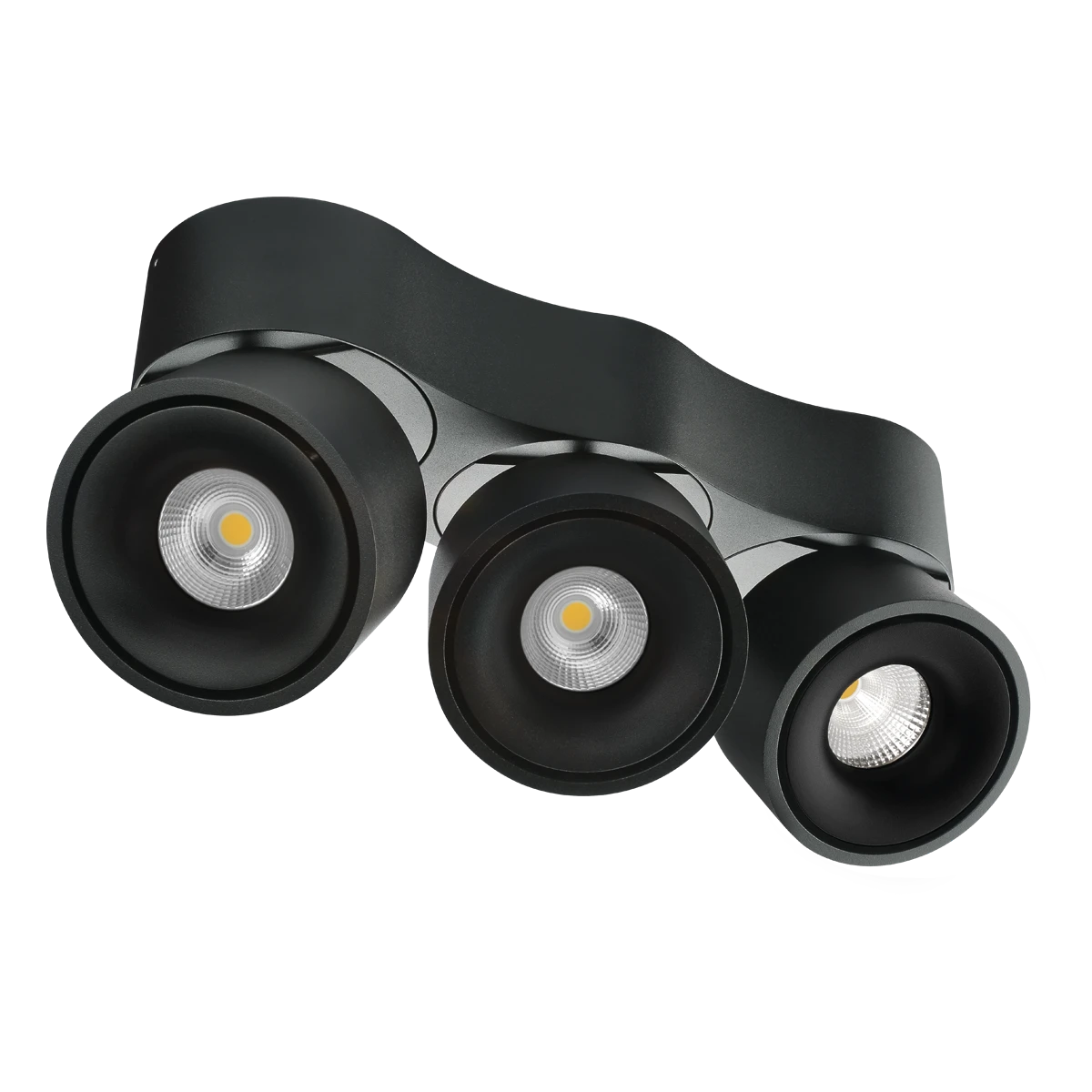 Deckenanbauleuchte für vielfältige Anwendungen im Innenbereich. Sowohl Effektbeleuchtungen, Raumbeleuchtung, Akzentuierte Beleuchtung und vieles mehr, lassen sich mit dieser Leuchte umsetzten. Zusätzliche Kosten für Leuchtmittel entfallen bei dieser Leuchte, da die Leistung von einem fest verbauten LED-Chip geliefert wird. Da das Betriebsgerät in der Leuchte verbaut ist, fallen auch hierfür keine zusätzlichen Kosten an. Mittels Dip-Schalter kann eine von zwei möglichen Farbtemperaturen eingestellt werden. Die möglichen Farbtemperaturen und daraus resultierenden Lumen sind: 3000K (3x817lm) und 4000K (3x848lm). Beide Leuchtenköpfe lassen sich um 350° drehen und auf eine Seite schwenken, mit einem Schwenkwinkel von 90°. Die Farbe entspricht ähnlich RAL9005.