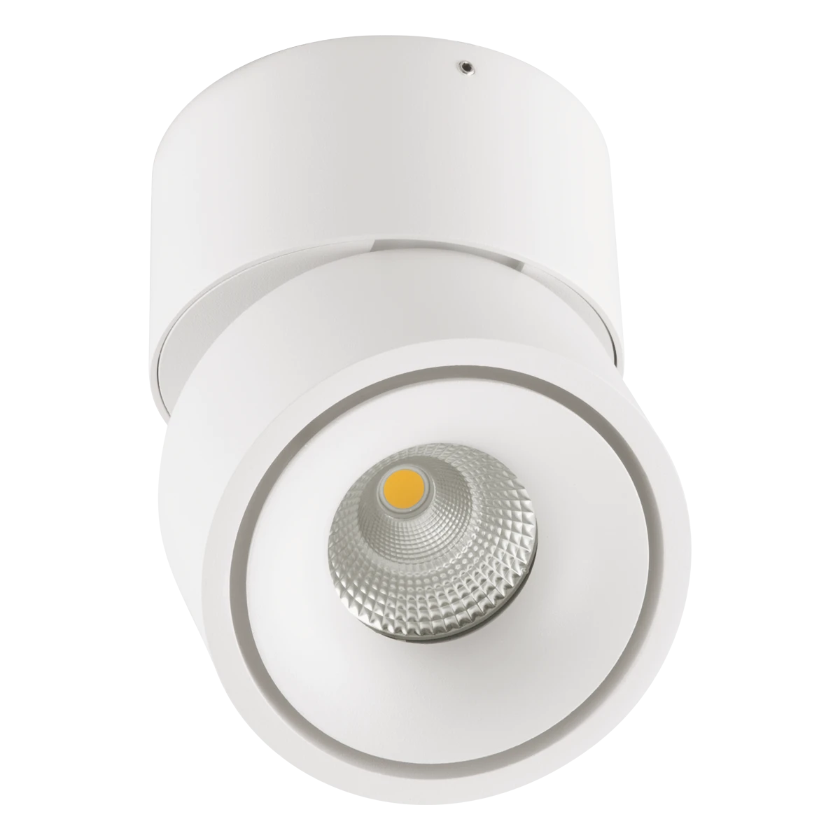 Deckenanbauleuchte für vielfältige Anwendungen im Innenbereich. Sowohl Effektbeleuchtungen, Raumbeleuchtung, Akzentuierte Beleuchtung und vieles mehr, lassen sich mit dieser Leuchte umsetzten. Zusätzliche Kosten für Leuchtmittel entfallen bei dieser Leuchte, da die Leistung von einem fest verbauten LED-Chip geliefert wird. Da das Betriebsgerät in der Leuchte verbaut ist, fallen auch hierfür keine zusätzlichen Kosten an. Die Leuchte lässt sich um 350° drehen und auf eine Seite schwenken, mit einem Schwenkwinkel von 90°. Die Farbe entspricht ähnlich RAL9016.