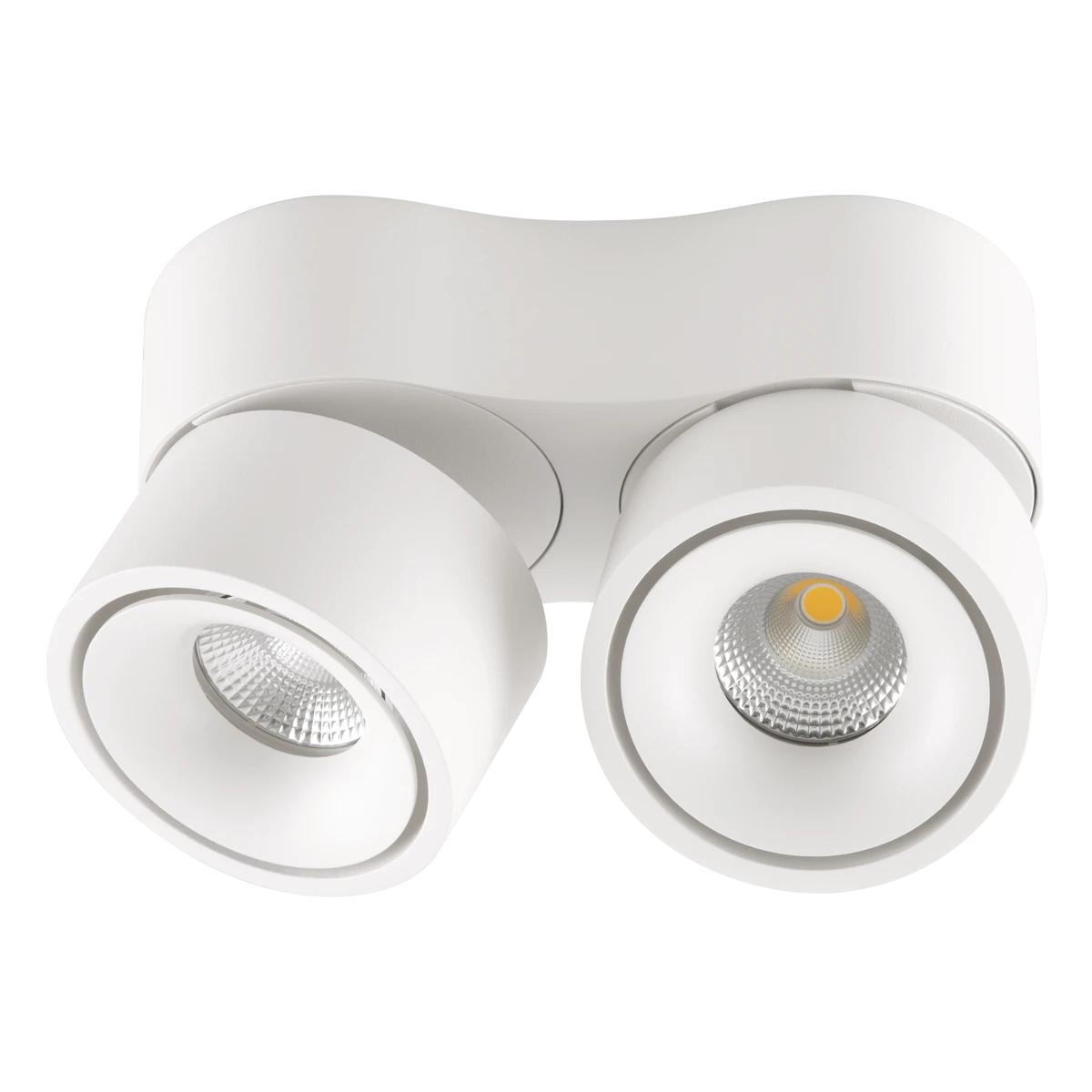 Deckenanbauleuchte für vielfältige Anwendungen im Innenbereich. Sowohl Effektbeleuchtungen, Raumbeleuchtung, Akzentuierte Beleuchtung und vieles mehr, lassen sich mit dieser Leuchte umsetzten. Zusätzliche Kosten für Leuchtmittel entfallen bei dieser Leuchte, da die Leistung von einem fest verbauten LED-Chip geliefert wird. Da das Betriebsgerät in der Leuchte verbaut ist, fallen auch hierfür keine zusätzlichen Kosten an. Beide Leuchtenköpfe lassen sich um 350° drehen und auf eine Seite schwenken, mit einem Schwenkwinkel von 90°. Die angegebenen Lumen werden pro Spot erreicht, die Gesamtlichtleistung liegt somit bei 2x 1120lm. Die Farbe entspricht ähnlich RAL9016.