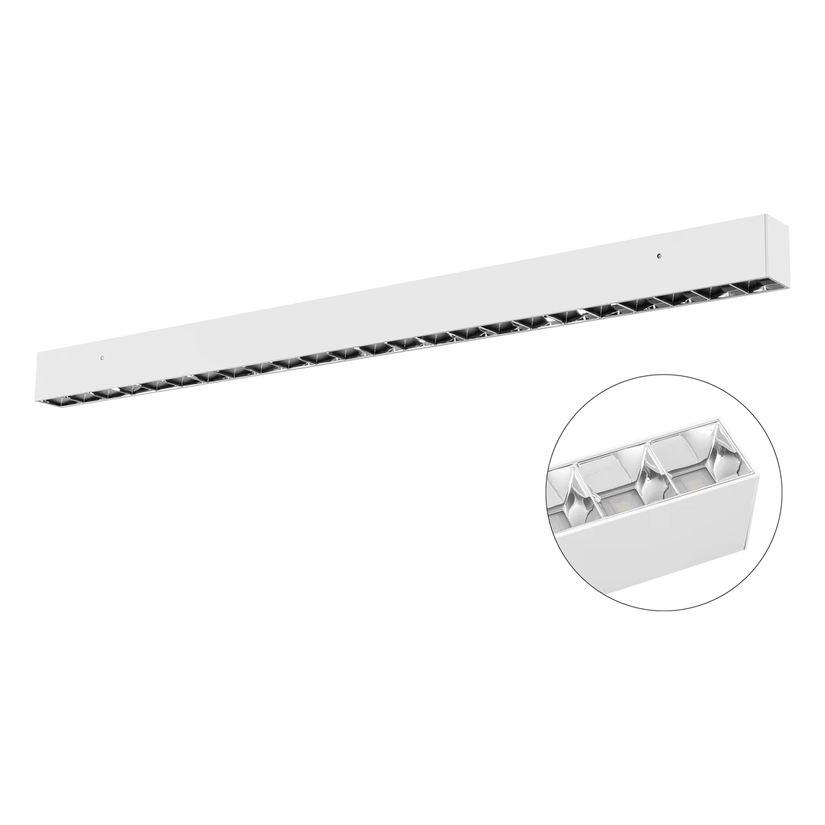 Die LED-Anbauleuchte kann aufgrund der hohen Lichtausbeute problemlos als Hauptbeleuchtung für zahlreiche Räume eingesetzt werden. An beiden Seiten befindet sich rückseitig je eine Kabeleinführung, somit ist ein Durchverdrahten beim Einsatz mehrerer Leuchten problemlos möglich. Die maximal mögliche Anzahl an Leuchten, welche mittels Durchverdrahtung über eine Einspeisung angeschlossen werden können, ist abhängig von dem verwendeten Leiterquerschnitt. Bei Verwendung einer Anschlussleitung mit 5x 1,5mm² können maximal 16 Leuchten durchverdrahtet werden. Die Leuchte kann direkt an der Decke befestigt werden. Mit dem separat erhältlichen Zubehör (Wandbefestigung, Seilabhängung, Baldachin) kann die Leuchte wahlweise auch an der Wand befestigt oder als Pendelleuchte montiert werden. Ebenso sind optional auch Leuchtenverbinder erhältlich. Der Blendwert beträgt UGR kleiner 19. Protokoll: DT6, DALI2. Die Leuchte kann optional auch über Push-L gedimmt werden.