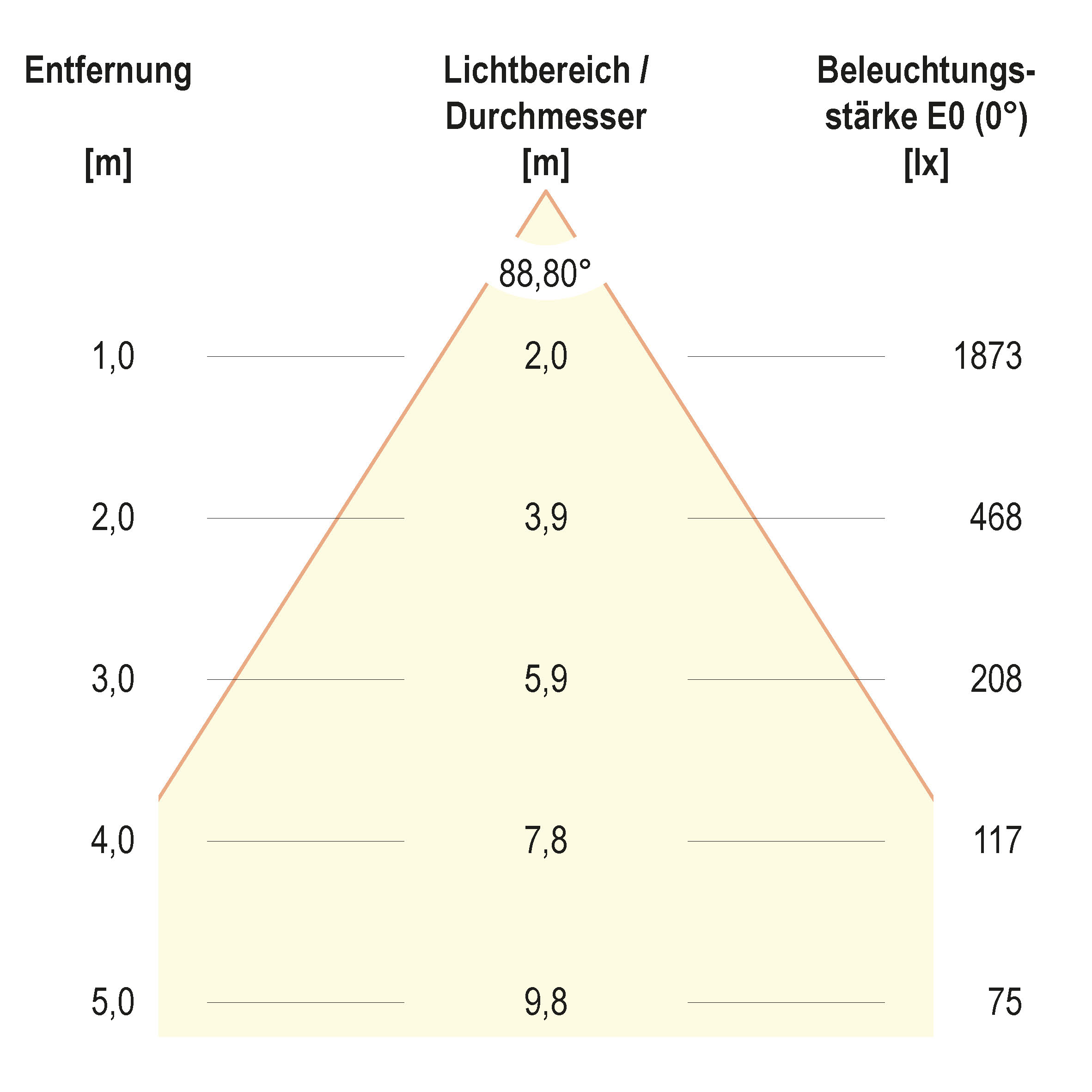 | Ausstrahlungswinkel (Bereich) | extrem breitstrahlend >80° |