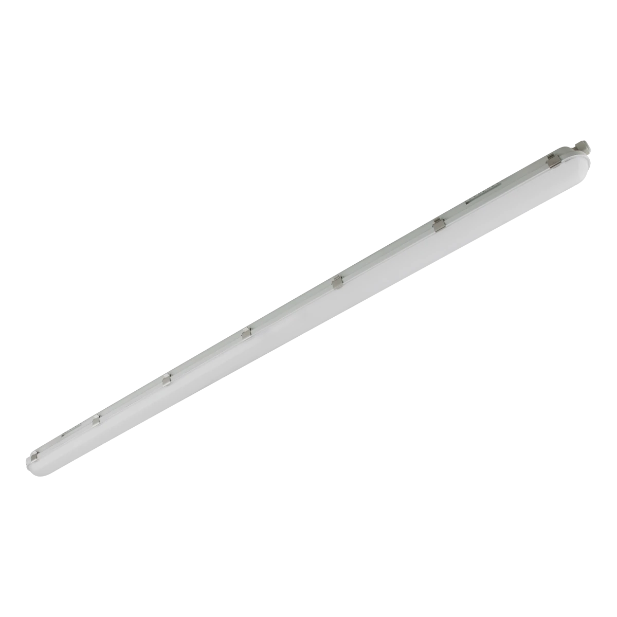 Die LED-Feuchtraumwannenleuchte kann sowohl an der Decke, als auch an der Wand montiert werden. Bedingt durch die Bauform ist die Leuchte perfekt für den Einsatz in Garagen, Kellerräumen, Werkstätten und vielen mehr geeignet. Eine einfache Befestigung ist mittels der beiden mitgelieferten Montagehalterungen (Edelstahl) möglich. Die Leistung ist über Dipschalter einstellbar. 25/50W bei 120lm/W. Die Leuchte besitzt zwei seitliche und zudem drei rückseitige Kabeleinführungen für eine flexible Leuchtenmontage. L80B10 bei 50.000h