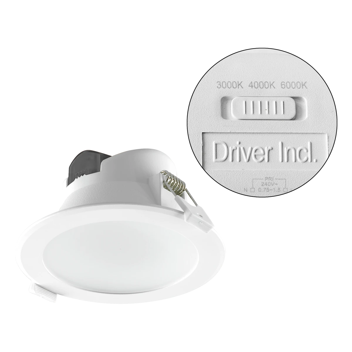 LED Deckeneinbauleuchte für vielfältige Anwendungen im Innenbereich. Sowohl Effektbeleuchtungen, Raumbeleuchtung, Akzentuierte Beleuchtung und vieles mehr, lassen sich mit dieser Leuchte umsetzten. Durch das integrierte Netzgerät, kann die Leuchte direkt an die 230V-Zuleitung angeschlossen werden, dadurch entfallen zusätzliche Kosten für Betriebsgeräte. Im eingebauten Zustand erreicht die Leuchte frontseitig die Schutzart IP44. Mit dem an der Rückseite angebrachten Schalter kann eine von drei möglichen Farbtemperaturen eingestellt werden. Die Leuchte kann auch über eine Zentralbatterie betrieben werden, mit einer Eingangsspannung von 176-250V/DC. Die möglichen Farbtemperaturen und daraus resultierenden Lumen sind: 3000K (800lm), 4000K (891lm) und 6000K (820lm).