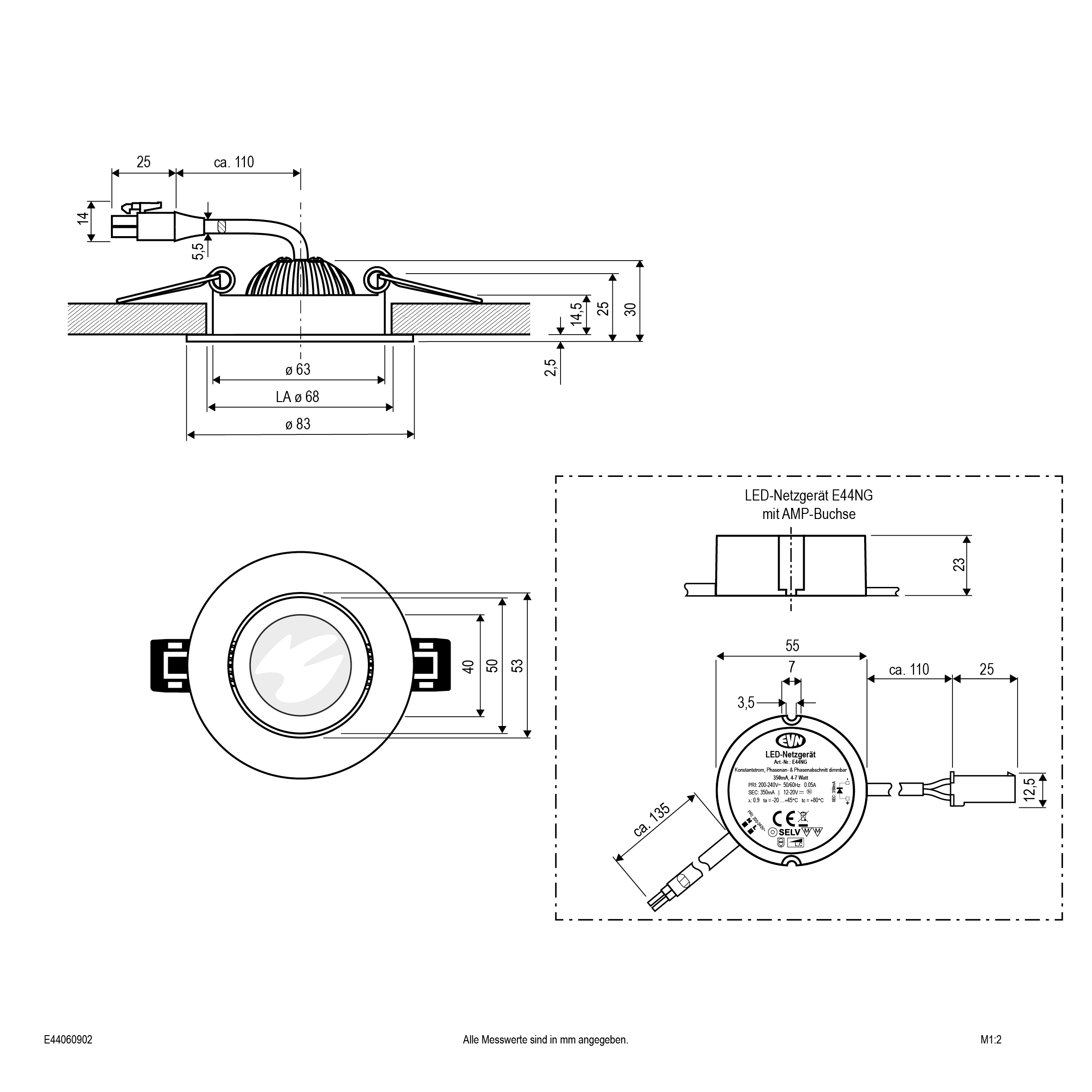 | Einbaudurchmesser – (min./max.) | 68 - 68 |