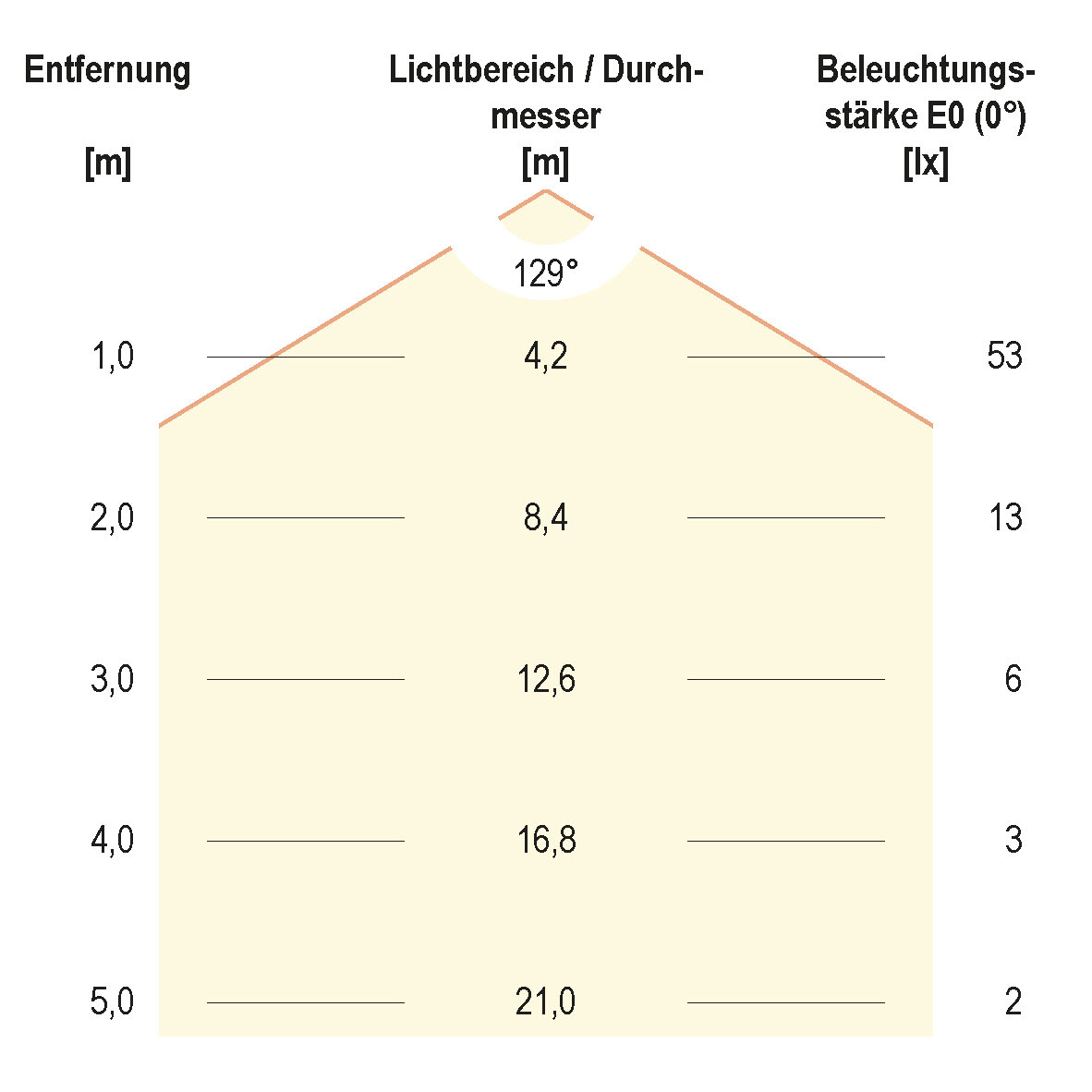 | Ausstrahlungswinkel (Bereich) | extrem breitstrahlend >80° |