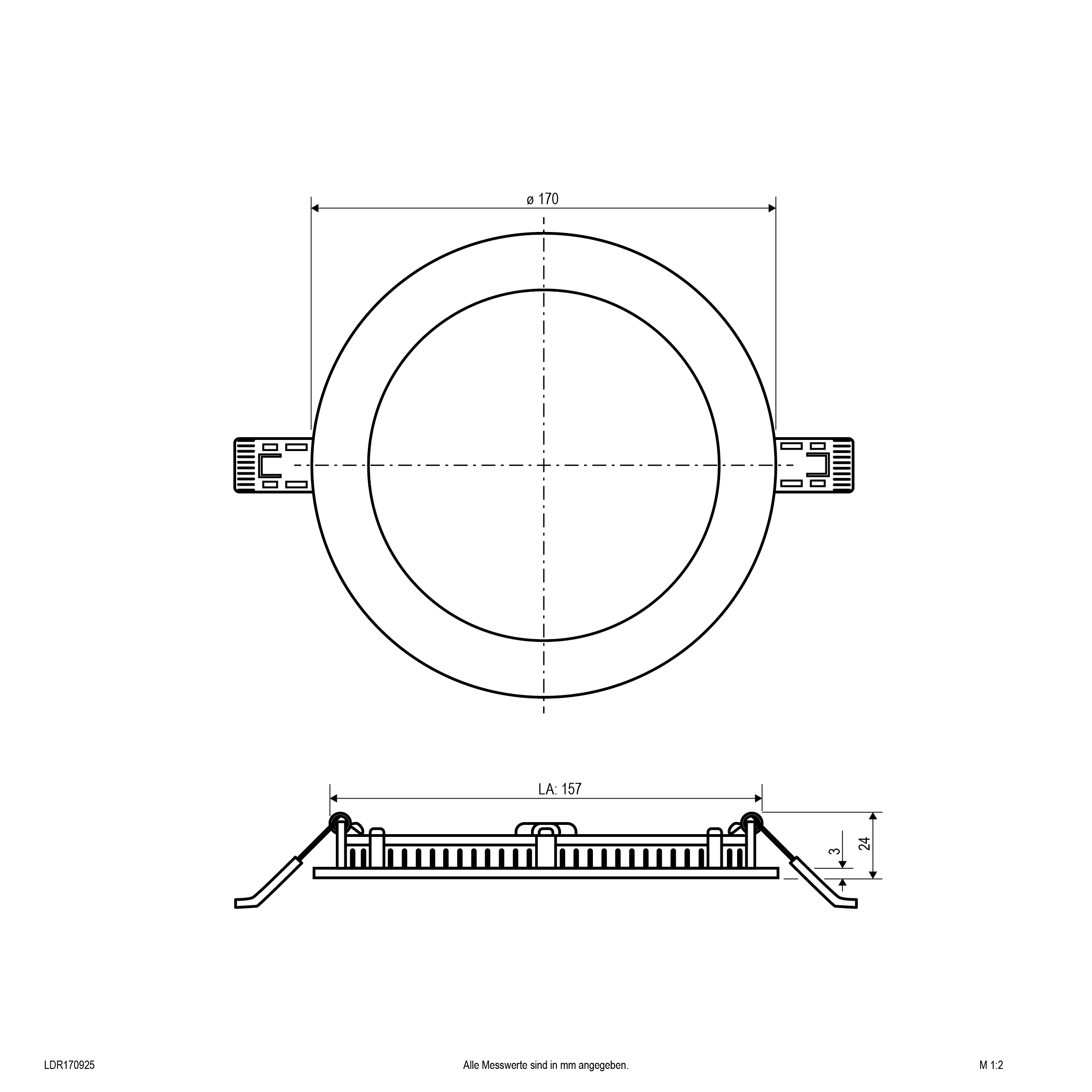 | Einbaudurchmesser – (min./max.) | 157 - 157 |