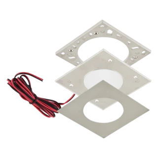 Die Ein- und Anbauleuchte eignet sich auf Grund der flachen Bauform perfekt für den Möbelbau, kann aber natürlich auch als Deckenleuchte eingesetzt werden. Die zwei Schraublöcher zur Befestigung werden von der Metallabdeckung im Edelstahldesign verdeckt, welche wiederum magnetisch an der Leuchte befestigt wird. Für den Einsatz als Einbauleuchte kann der Aufbaurahmen, welcher ebenfalls magnetisch an der Rückseite befestigt ist, einfach abgenommen werden. An der Leuchte befindet sich eine 2m lange Anschlussleitung mit freien Aderenden.
