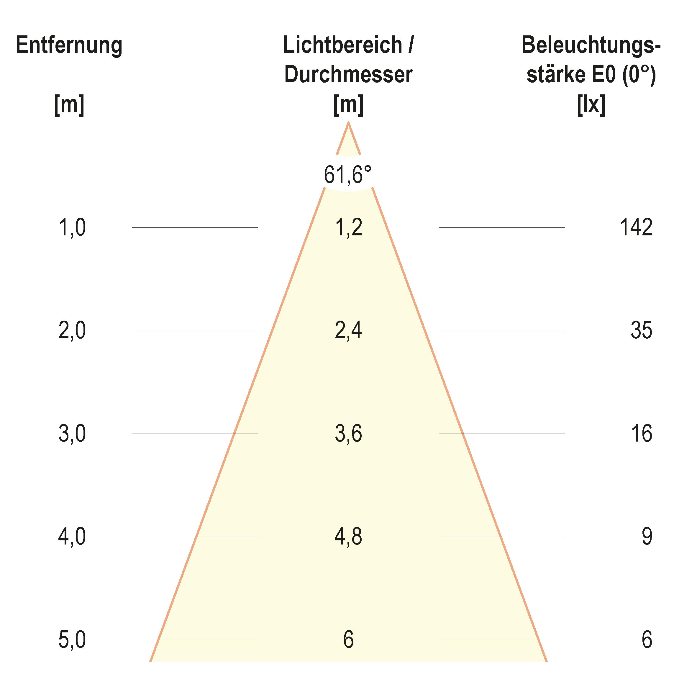 | Ausstrahlungswinkel (Bereich) | extrem breitstrahlend >80° |