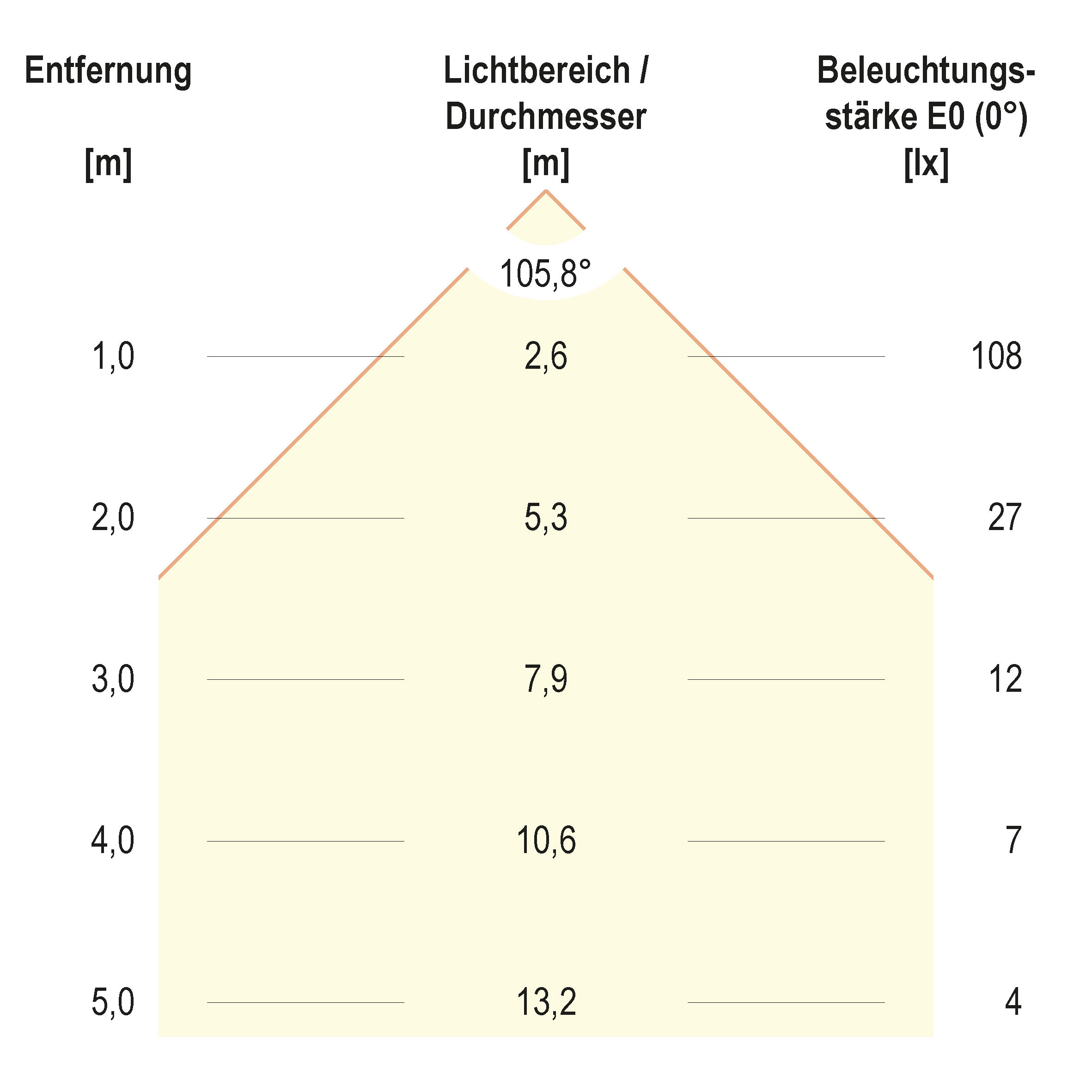 | Ausstrahlungswinkel (Bereich) | extrem breitstrahlend >80° |