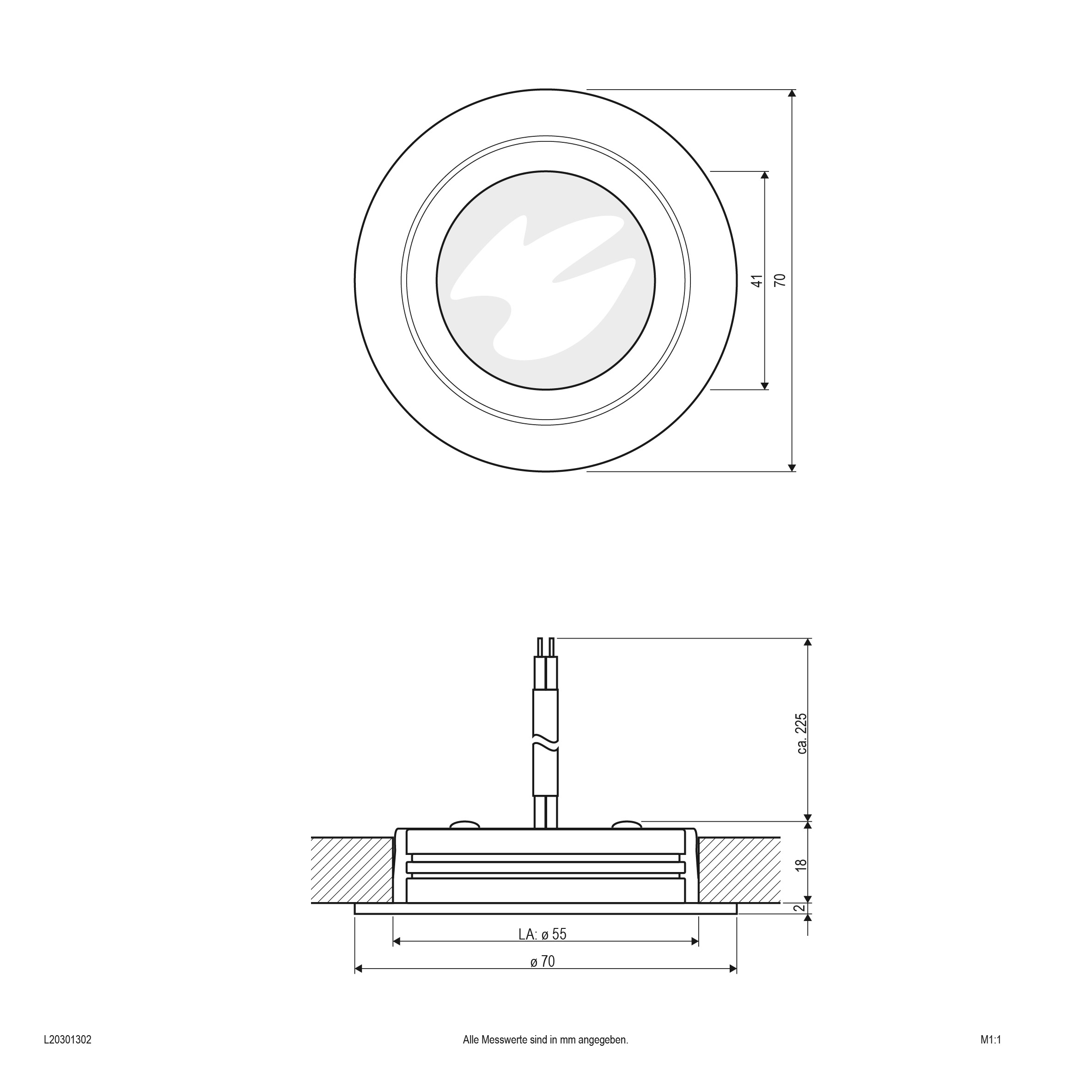 | Einbaudurchmesser – (min./max.) | 55 - 55 |
