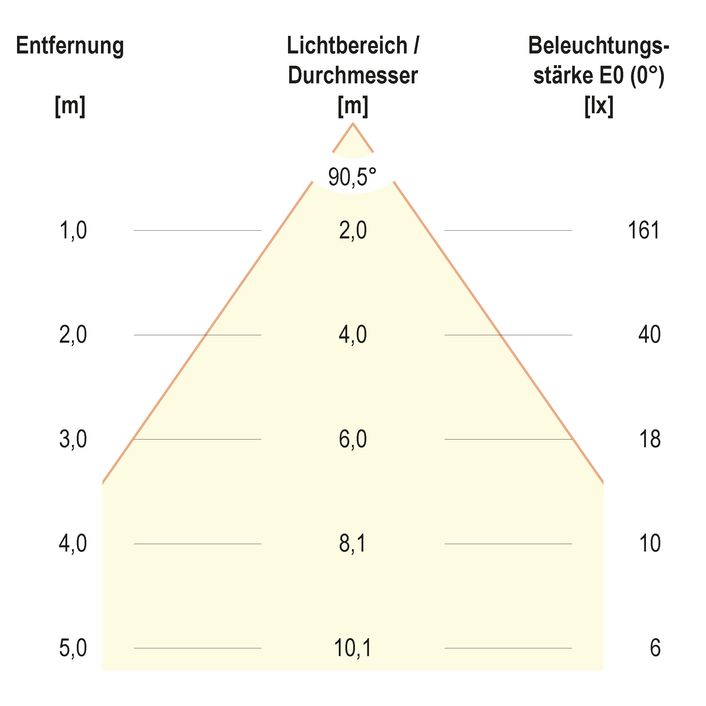| Ausstrahlungswinkel (Bereich) | mediumstrahlend 21-40° |