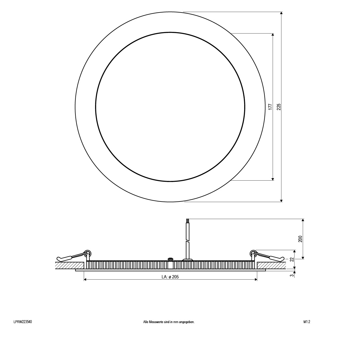 | Einbaudurchmesser – (min./max.) | 205 - 205 |