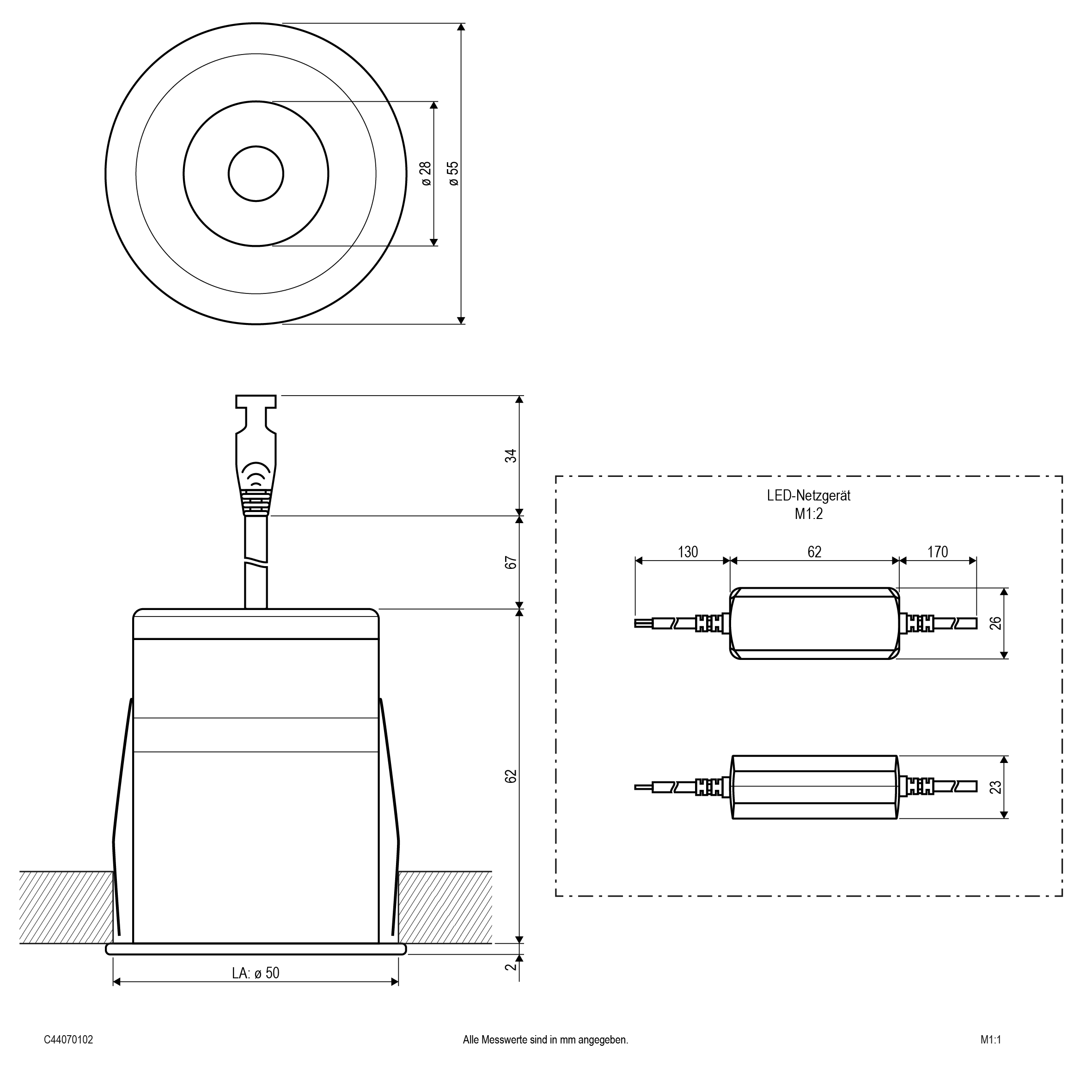 | Einbaudurchmesser | 50 mm |