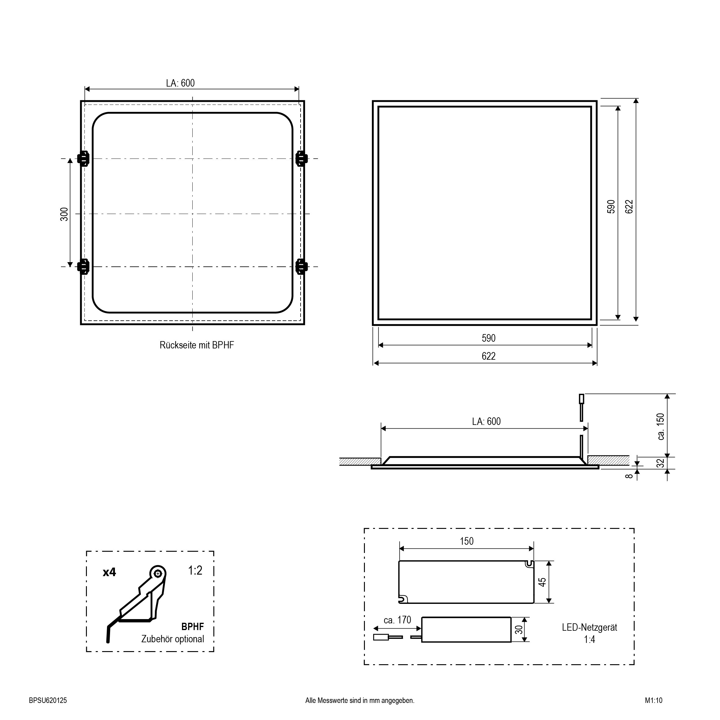 | Abmessung (LxBxH) | 622 x 622 x 32 mm |