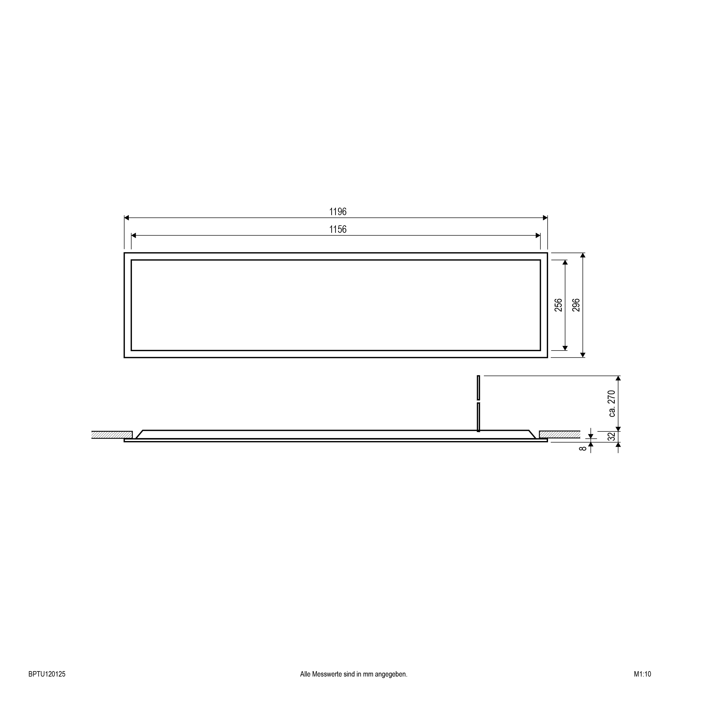 | Abmessung (LxBxH) | 1196 x 296 x 32 mm |