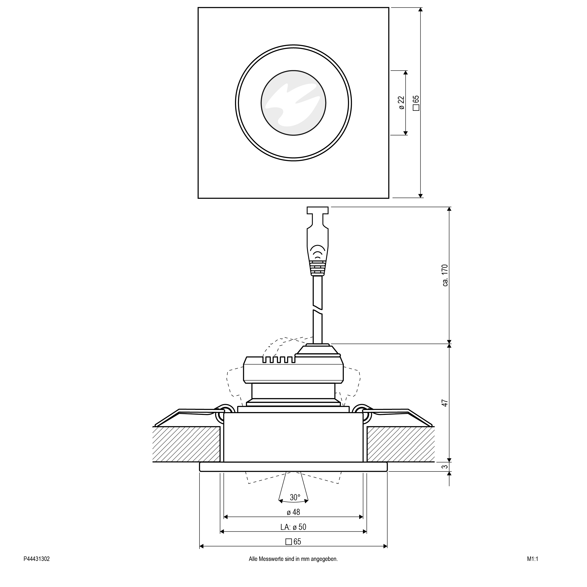 | Einbaudurchmesser | 50 mm |