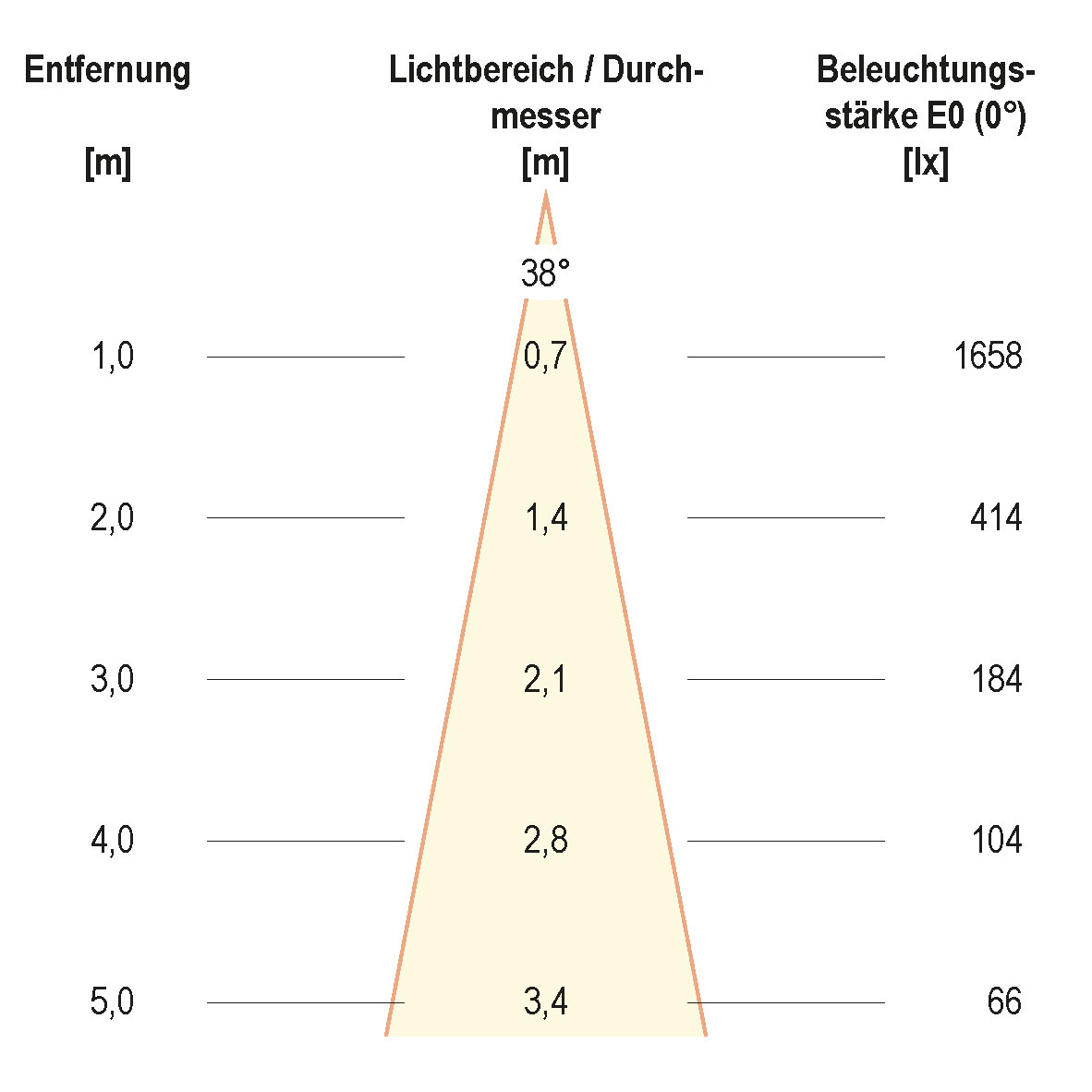 | Ausstrahlungswinkel (Bereich) | mediumstrahlend 21-40° |