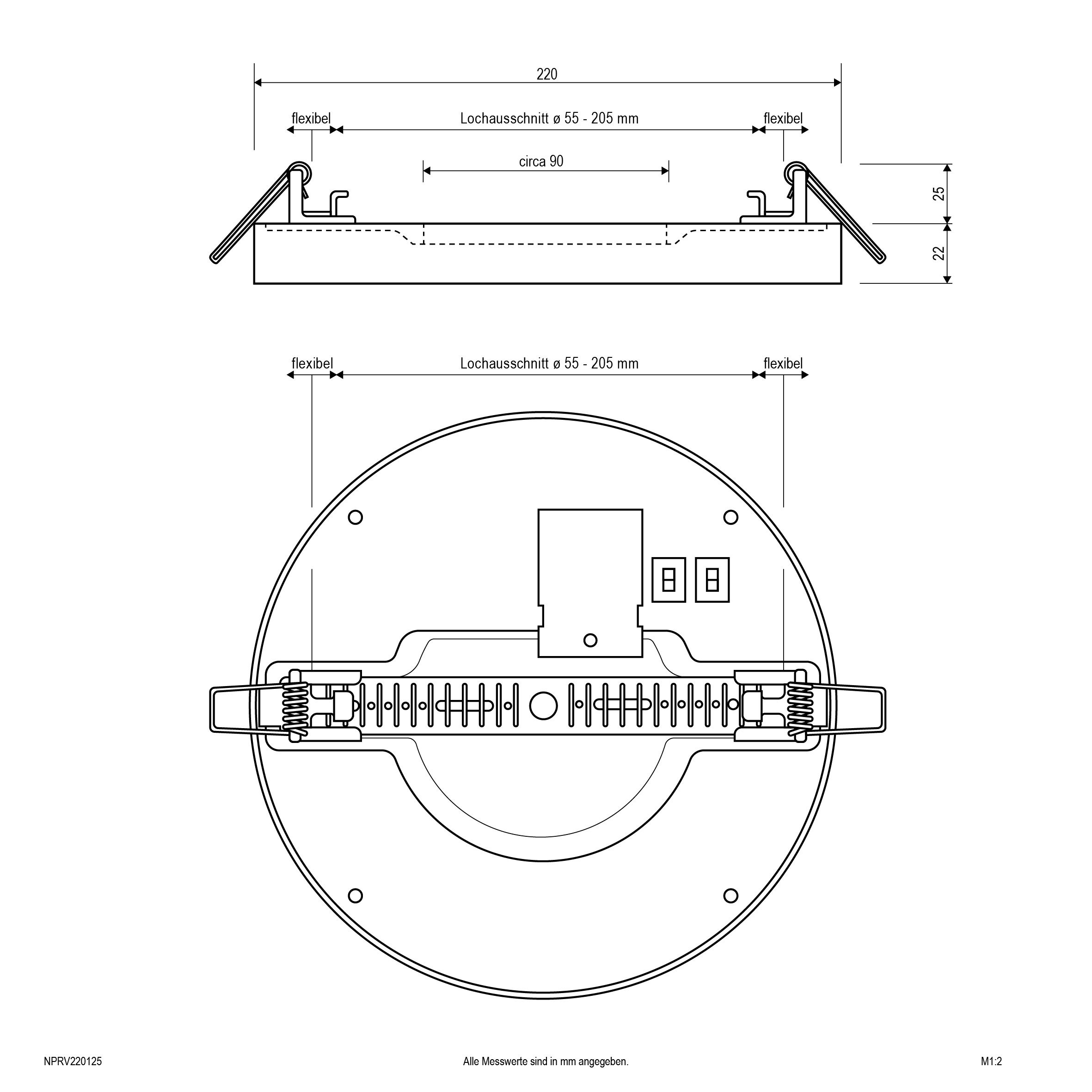 | Einbaudurchmesser – (min./max.) | 55 - 205 |