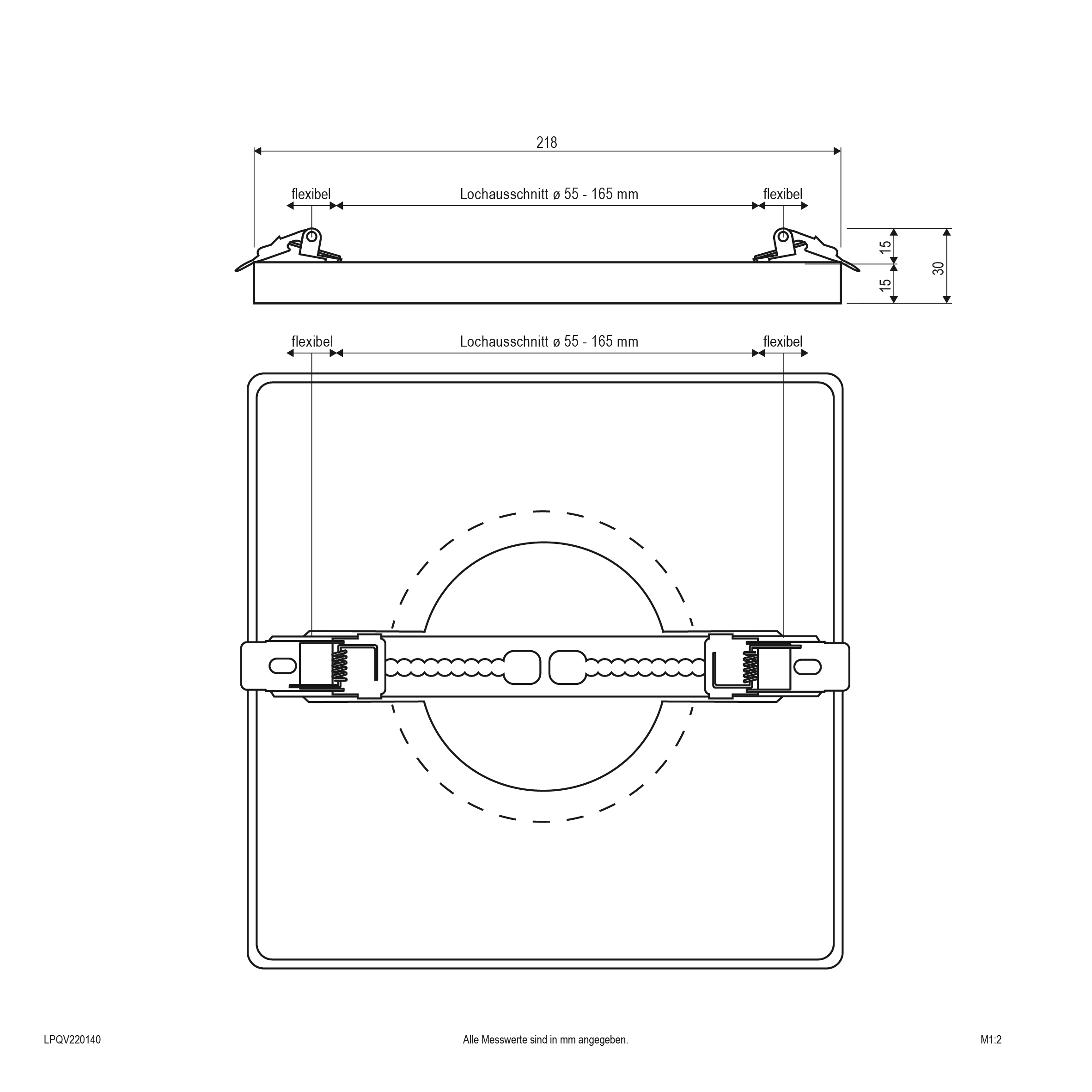 | Einbauhöhe/-tiefe – (min./max.) | 15 - 15 |