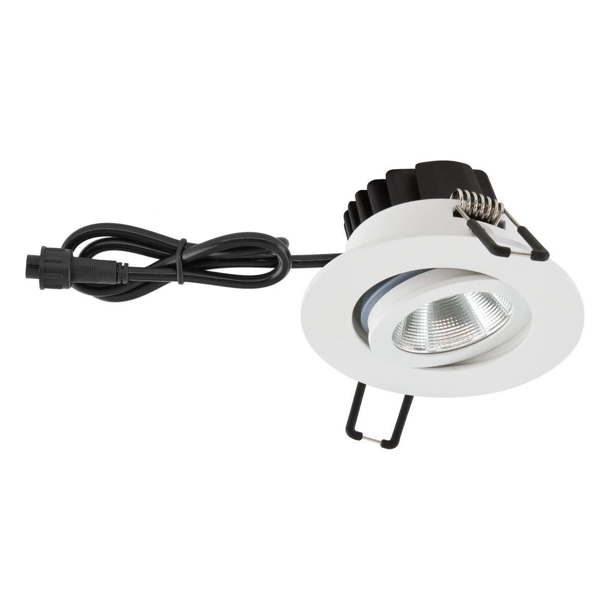 Mit der COB-LED Deckeneinbauleuchte lassen sich vielfältige Anwendungen im Innenbereich, wie z. B. Effektbeleuchtung, Raumbeleuchtung, Akzentuierte Beleuchtung und vieles mehr realisieren. Beim Einbau in geschlossene Decken erreicht die Leuchte die Schutzart IP65. Aufgrund dessen kann die Leuchte natürlich ebenso für Feuchtraum-Anwendungen und im Außenbereich eingesetzt werden. Zusätzliche Kosten für Leuchtmittel entfallen bei dieser Leuchte, da die Leistung von einem fest verbauten LED-Chip geliefert wird. Der Schwenkwinkel beträgt 20°, Gehäusefarbe ähnlich RAL9003. tc: 75°C.