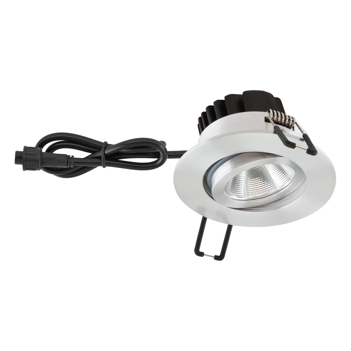Die COB-LED Deckeneinbauleuchte ist komplett aus V4A Edelstahl gefertigt. Mit dieser lassen sich vielfältige Anwendungen im Innenbereich, wie z. B. Effektbeleuchtung, Raumbeleuchtung, Akzentuierte Beleuchtung und vieles mehr realisieren. Beim Einbau in geschlossene Decken erreicht die Leuchte die Schutzart IP65. Aufgrund dessen kann die Leuchte natürlich ebenso für Feuchtraum-Anwendungen und im Außenbereich eingesetzt werden, auch in Umgebungen mit Salz- und Chlorhaltiger Luft. Zusätzliche Kosten für Leuchtmittel entfallen bei dieser Leuchte, da die Leistung von einem fest verbauten LED-Chip geliefert wird. Der Schwenkwinkel beträgt 20°, tc: 75°C.