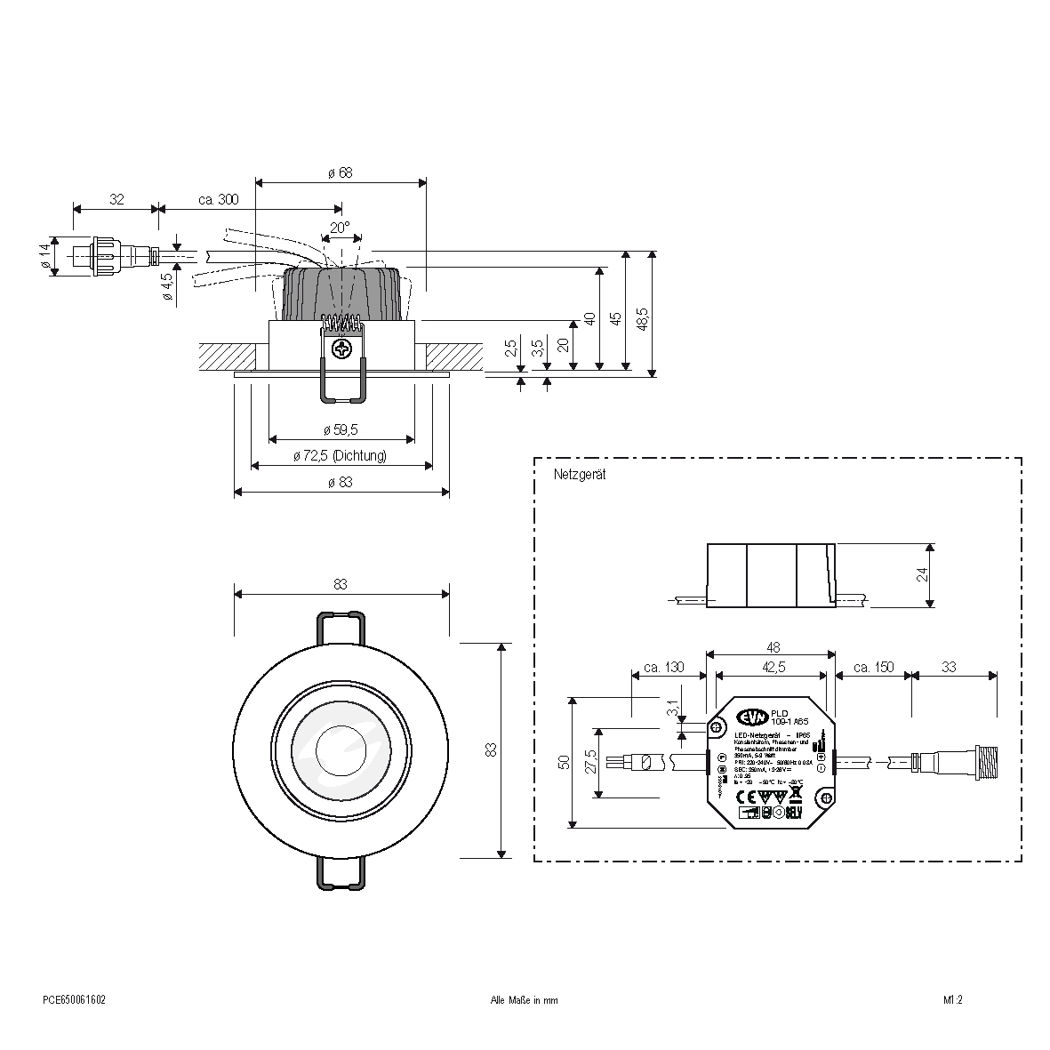 | Einbaudurchmesser – (min./max.) | 68 - 68 |