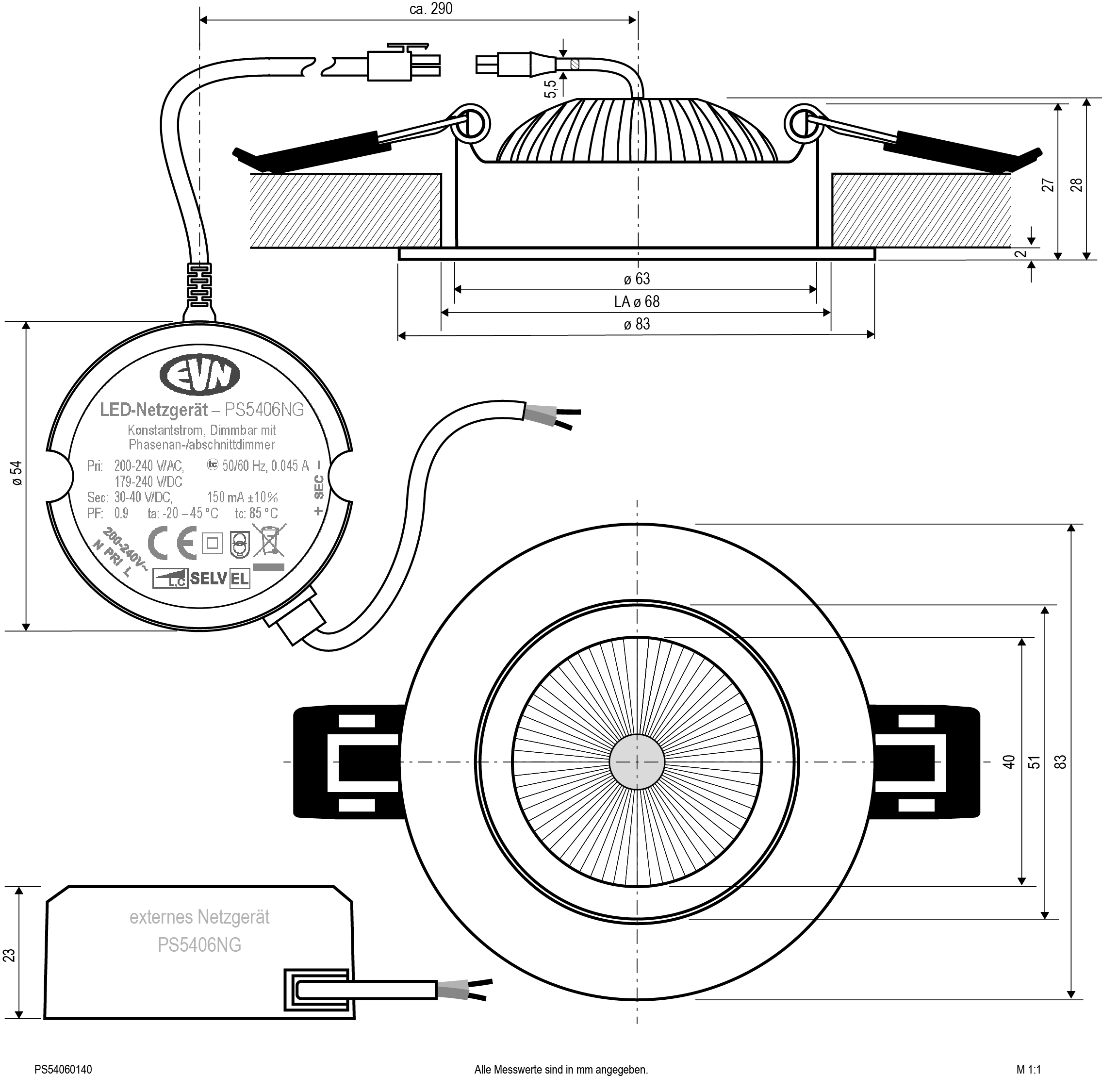 | Betriebsgerät | LED-Betriebsgerät stromgesteuert |