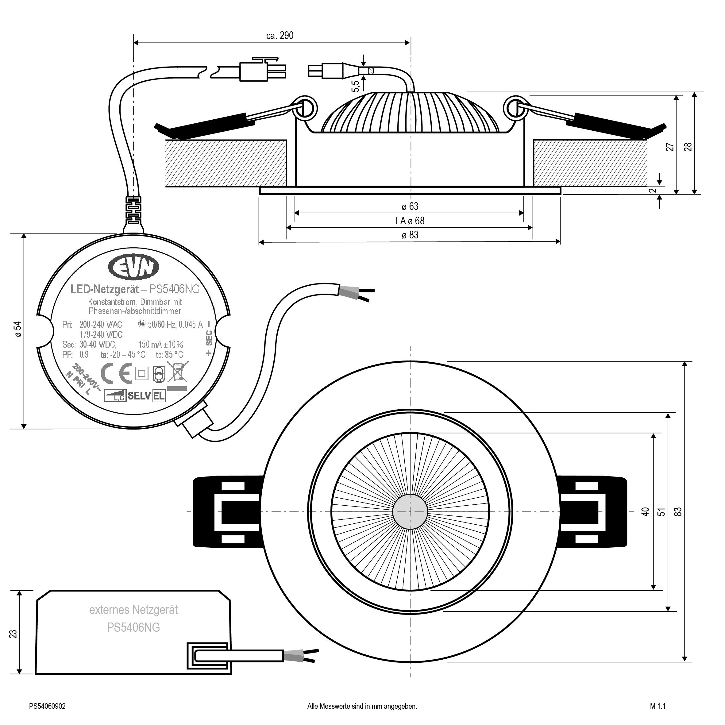 | Betriebsgerät | LED-Betriebsgerät stromgesteuert |