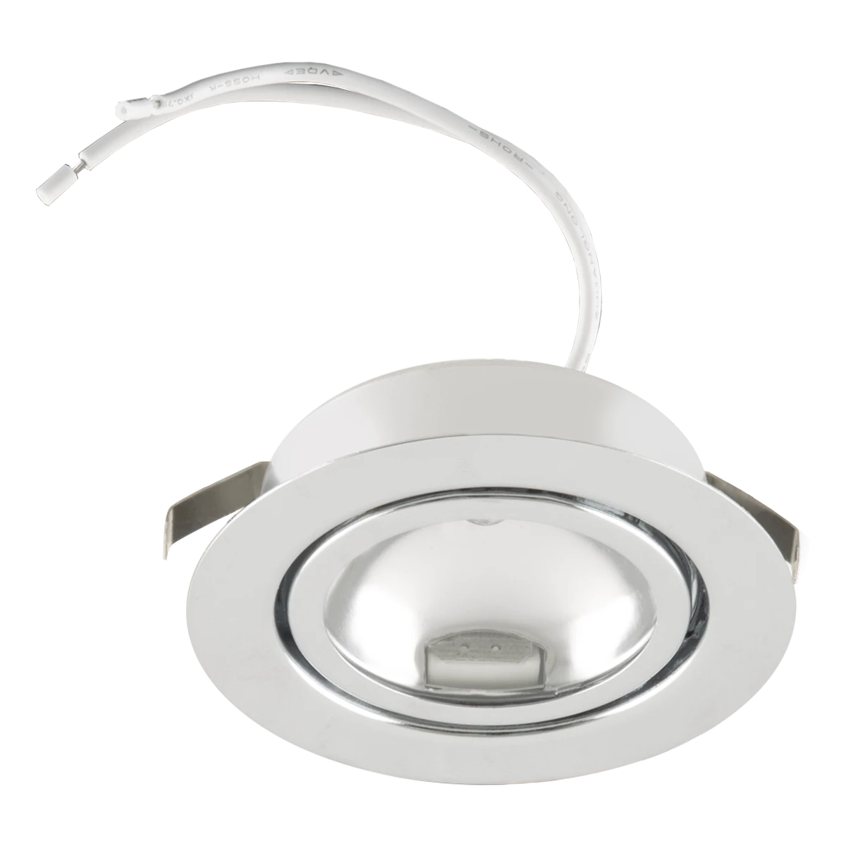 Die Leuchte ist auf Grund der MM-Kennzeichnung für den Möbeleinbau geeignet, kann aber ebenso auch als Deckenleuchte verwendet werden. Das Gehäuse ist aus Kunststoff gefertigt, der sichtbare Leuchtenring ist aus Stahl gefertigt und Chrom-Optik gehalten. An der Leuchte befindet sich eine 15cm lange Anschlussleitung, die optional mit dem beiliegenden AMP-Stecker versehen werden kann. Um einen möglichst einfachen Wechsel des Leuchtmittels zu gewährleisten, lässt sich die Glasabdeckung einfach aufklappen.