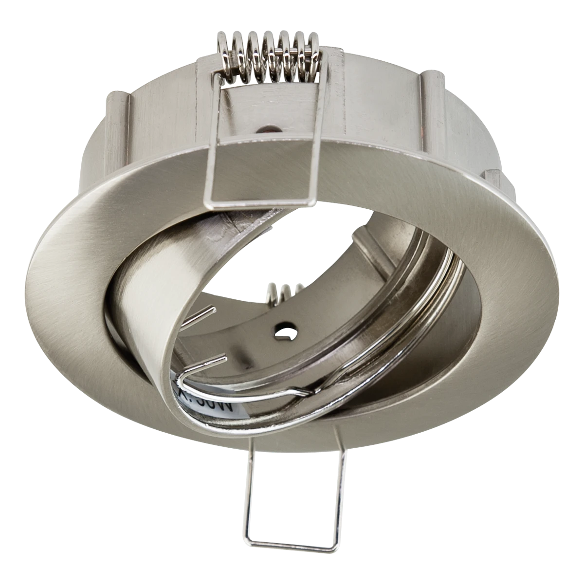 Schwenkbare Deckeneinbauleuchte für vielfältige Anwendungen im Innenbereich. Abhängig von der verwendeten Fassung lassen sich verschiedene Leuchtmittel für die Unterschiedlichsten Beleuchtungsanforderungen in die Leuchte einsetzen, ganz egal ob Halogen oder LED, wodurch der Gestaltungsmöglichkeit nahezu keine Grenzen gesetzt sind. Der Schwenkwinkel der Leuchte beträgt 40°. Die Leuchte ist aus Zink mit einer Zamaclegierung gefertigt. Die Farbe der Leuchte entspricht Chrom satiniert.