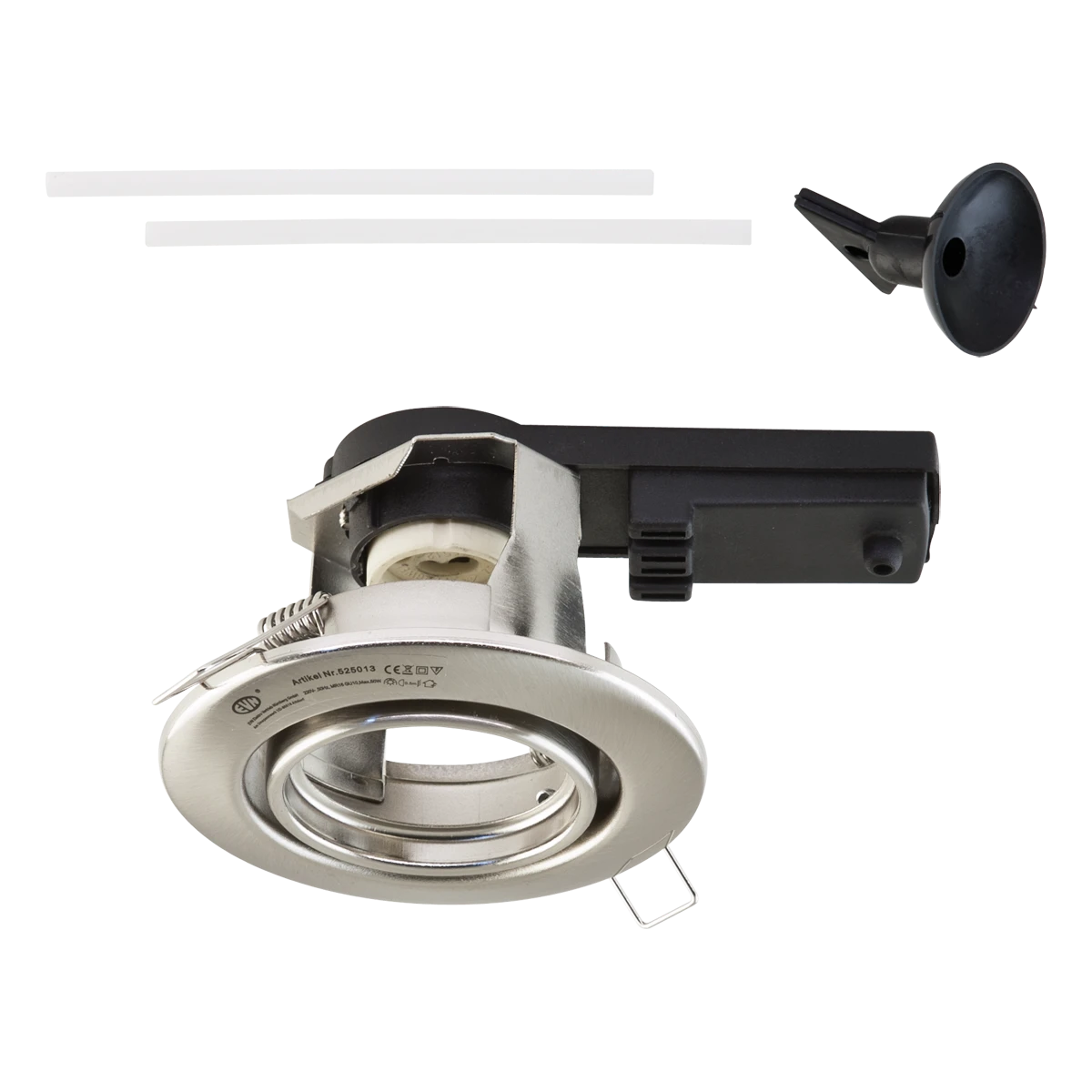 Deckeneinbauleuchte für vielfältige Anwendungen im Innenbereich. Sowohl Effektbeleuchtungen, Raumbeleuchtung, Akzentuierte Beleuchtung und vieles mehr, lassen sich mit dieser Leuchte umsetzten. Durch die Hochvoltfassung lassen sich verschiedene Leuchtmittel für die Unterschiedlichsten Beleuchtungsanforderungen in die Leuchte einsetzen, wodurch der Gestaltungsmöglichkeit nahezu keine Grenzen gesetzt sind. Da die Leuchte direkt an die 230V-Zuleitung angeschlossen werden kann, entfallen zusätzliche Kosten für Betriebsgeräte. Die fest an der Leuchte verbauten Zugentlastung bzw. Anschlussbox ermöglicht außerdem eine geringere Einbautiefe als bei herkömmlichen Zugentlastungen. Der Schwenkwinkel der Leuchte beträgt 30°. Die Farbe der Leuchte entspricht Chrom satiniert.