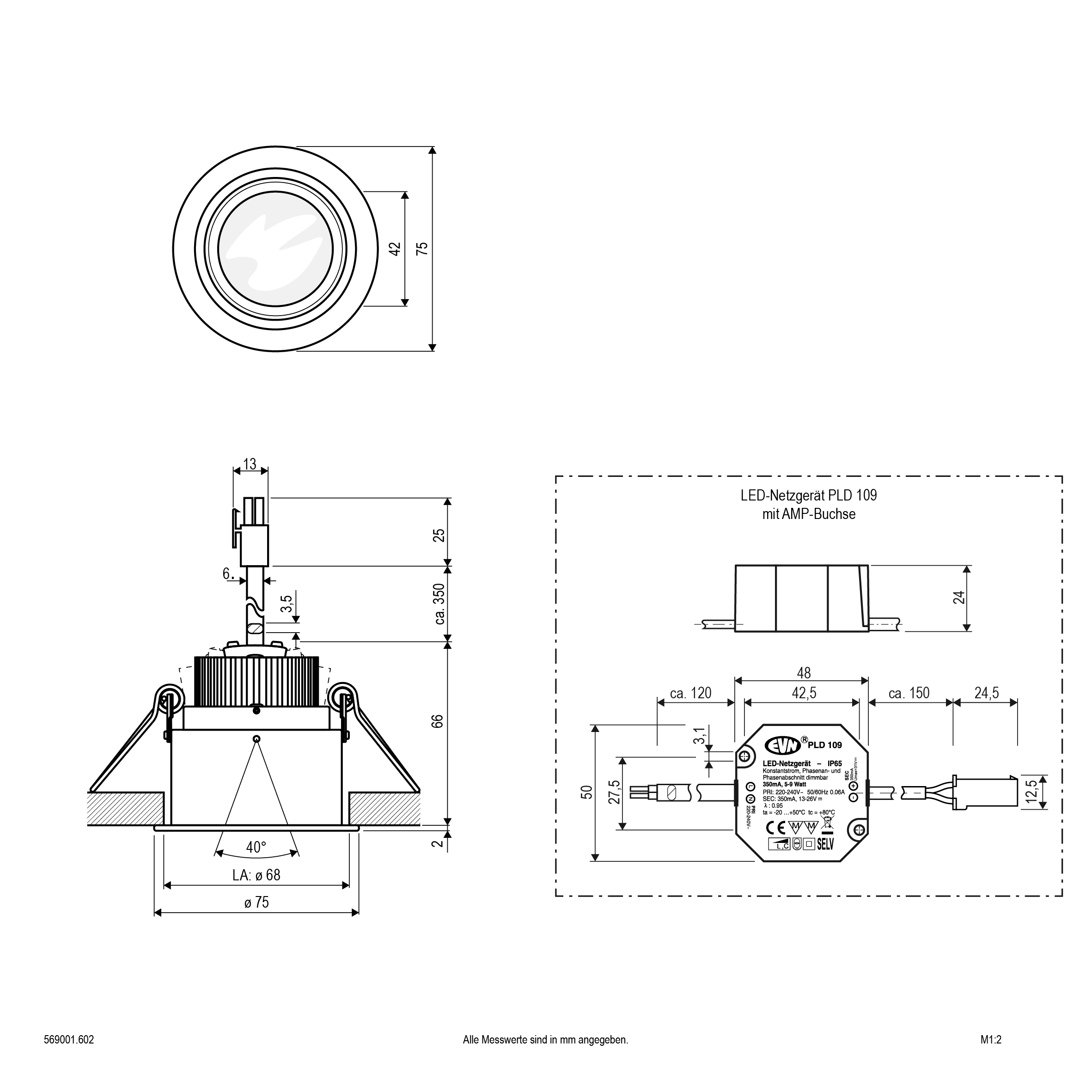 | Einbaudurchmesser – (min./max.) | 68 - 68 |