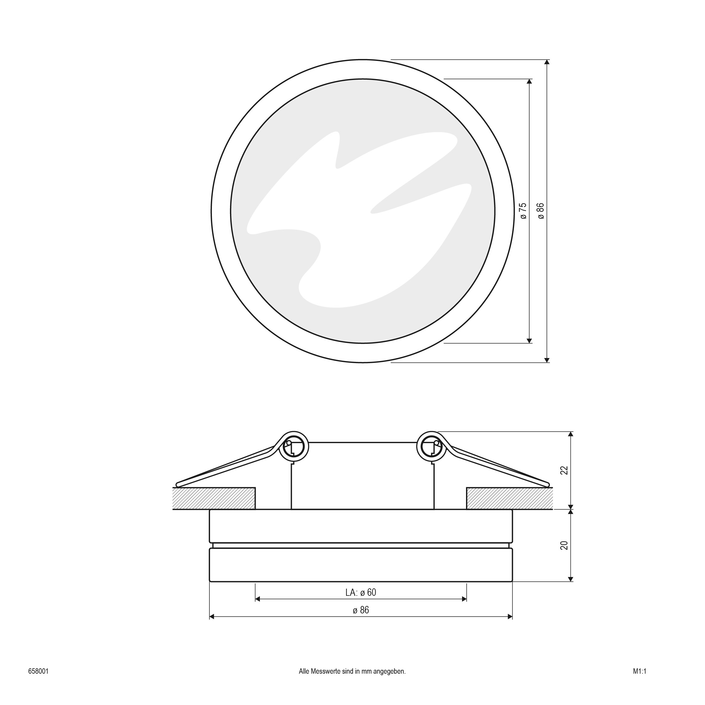 | Einbaudurchmesser – (min./max.) | 60 - 60 |