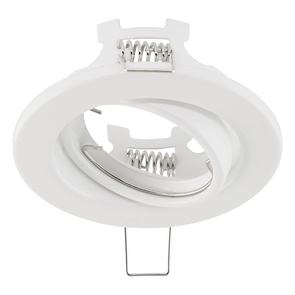 Schwenkbare Deckeneinbauleuchte für vielfältige Anwendungen im Innenbereich. Abhängig von der verwendeten Fassung lassen sich verschiedene Leuchtmittel für die Unterschiedlichsten Beleuchtungsanforderungen in die Leuchte einsetzen, ganz egal ob Halogen oder LED, wodurch der Gestaltungsmöglichkeit nahezu keine Grenzen gesetzt sind. Der Schwenkwinkel der Leuchte beträgt 20°. Der im Lieferumfang enthaltene Niedervoltdistanzbügel kann optional bei der Montage verwendet werden, wobei sich die Einbautiefe jedoch auf 120mm erhöht.