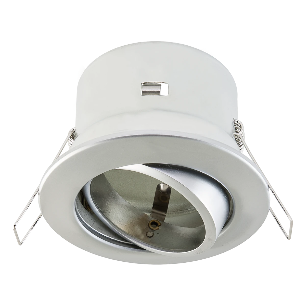 Schwenkbare Deckeneinbauleuchte für vielfältige Anwendungen im Innenbereich. Abhängig von der verwendeten Fassung lassen sich verschiedene Leuchtmittel für die Unterschiedlichsten Beleuchtungsanforderungen in die Leuchte einsetzen, ganz egal ob Halogen oder LED, wodurch der Gestaltungsmöglichkeit nahezu keine Grenzen gesetzt sind. Der Schwenkwinkel der Leuchte beträgt 30°, der Drehbereich beträgt 355°. Die aus Messing gefertigte Leuchte wird inkl. Stahleinbautopf geliefert.