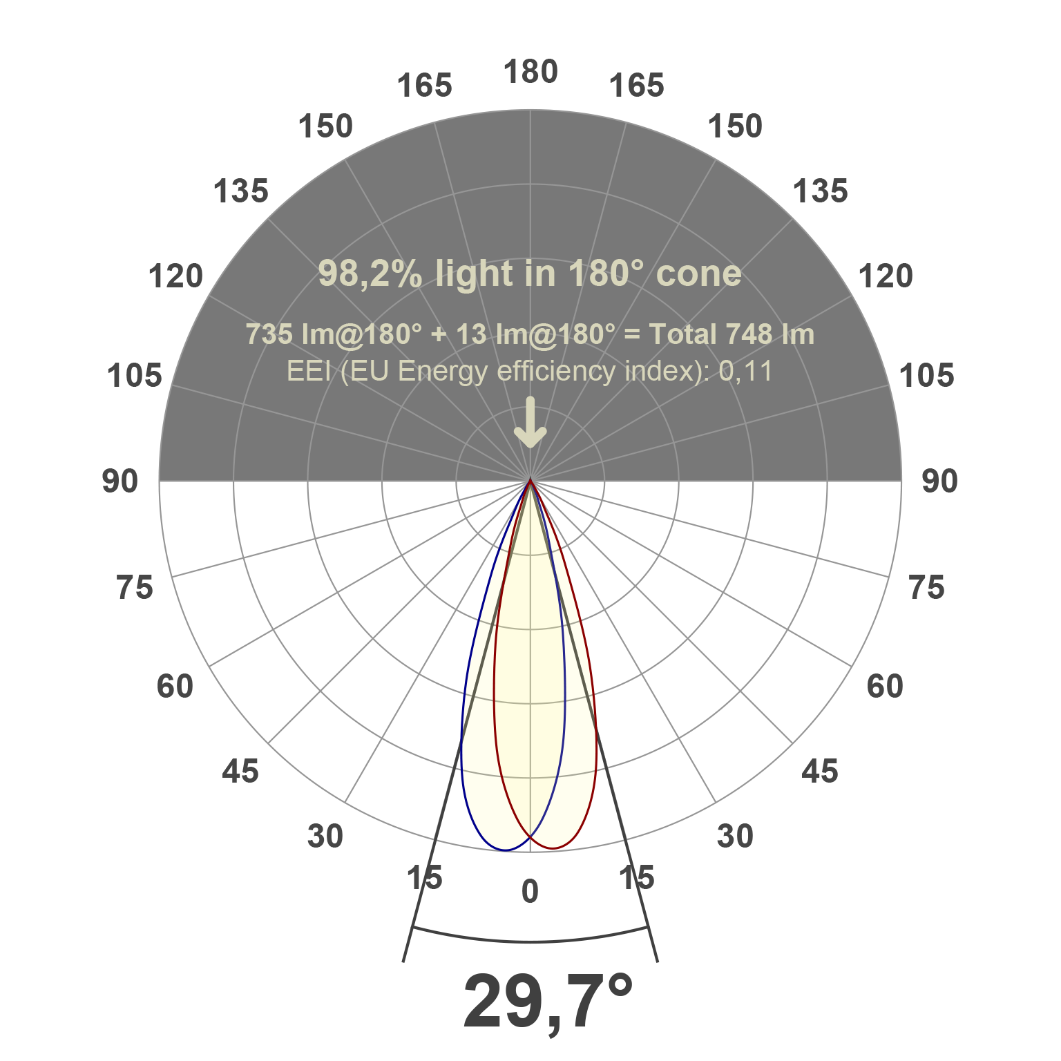 | Lichtstrom – werkseitig | 735 lm |