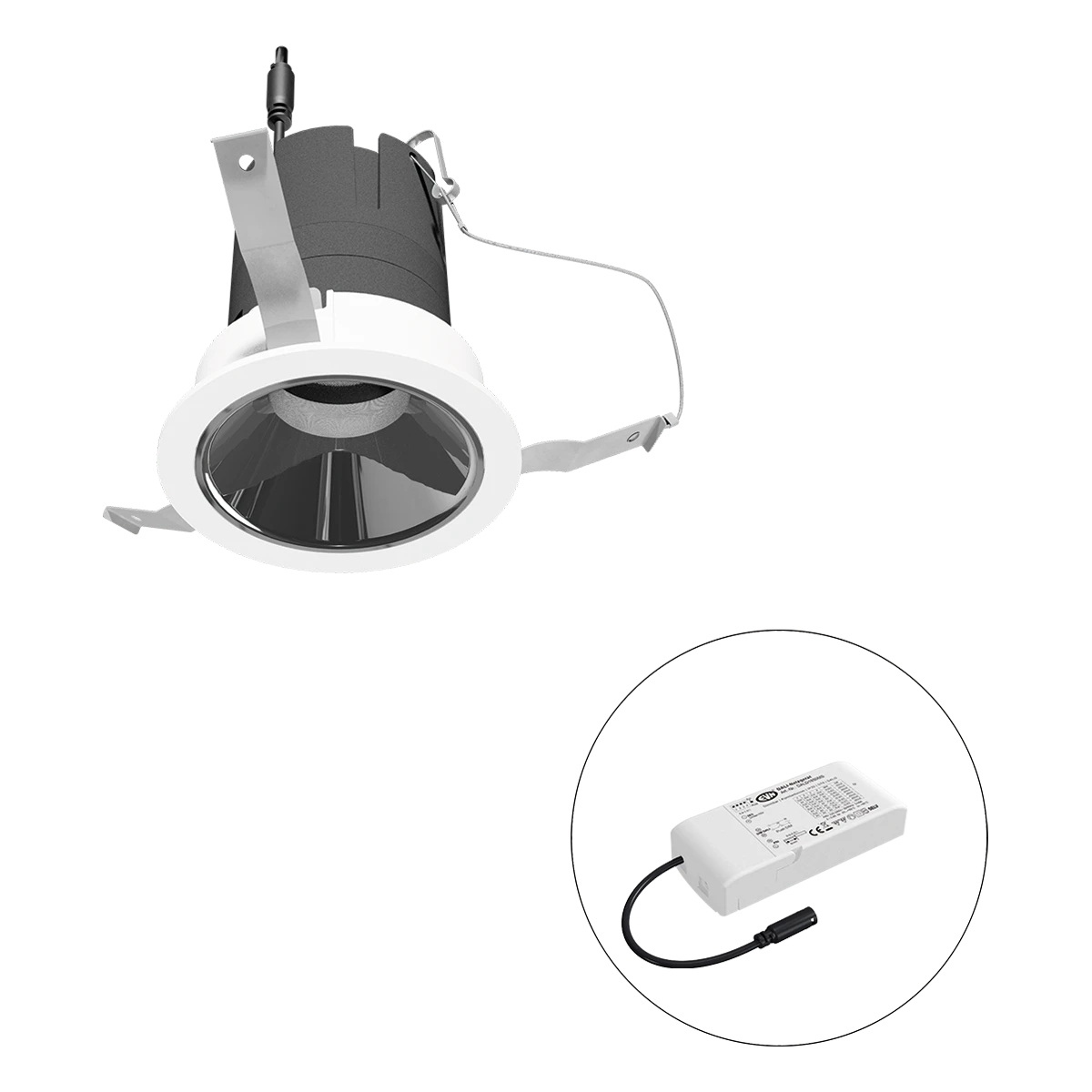 Mit der COB-LED Deckeneinbauleuchte lassen sich vielfältige Anwendungen im Innenbereich, wie z. B. Effektbeleuchtung, Raumbeleuchtung, Akzentuierte Beleuchtung und vieles mehr realisieren. Zusätzliche Kosten für Leuchtmittel entfallen bei dieser Leuchte, da die Leistung von einem fest verbauten LED-Chip geliefert wird. Da im Lieferumfang das Netzgerät bereits enthalten ist, fallen auch hierfür keine zusätzlichen Kosten an. Gehäusefarbe ähnlich RAL9003. Weitere Merkmale: Farbwiedergabeindex CRI92, Bemessungslebensdauer L90B10 bei 50000h.
