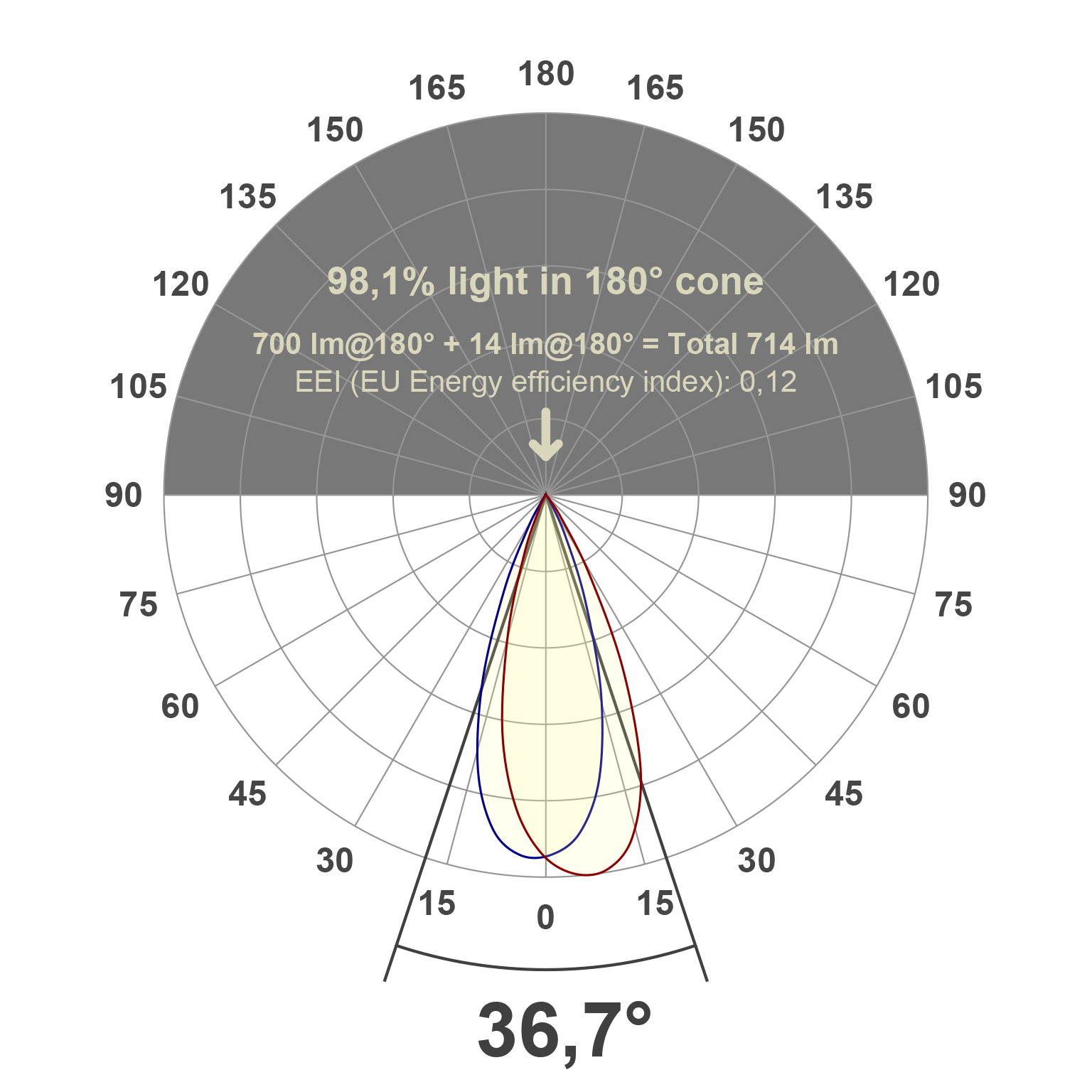| Ausstrahlungswinkel (Bereich) | mediumstrahlend 21-40° |